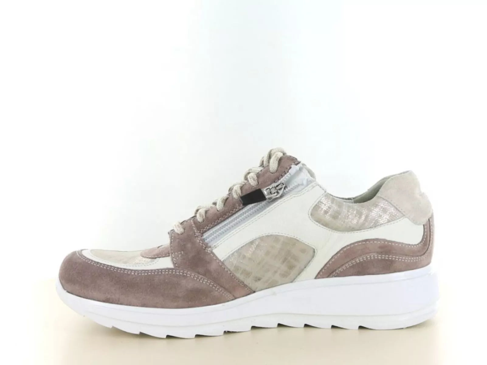 De Durea 6315 wijdte K in de kleur 2166 Charme is dé perfecte dames veterschoen voor wie extra ruimte en optimaal comfort zoekt. Deze stijlvolle sneaker combineert zachte roze- en crèmetinten met subtiele suède details en een verfijnde print, waardoor comfort en uitstraling moeiteloos samenkomen.