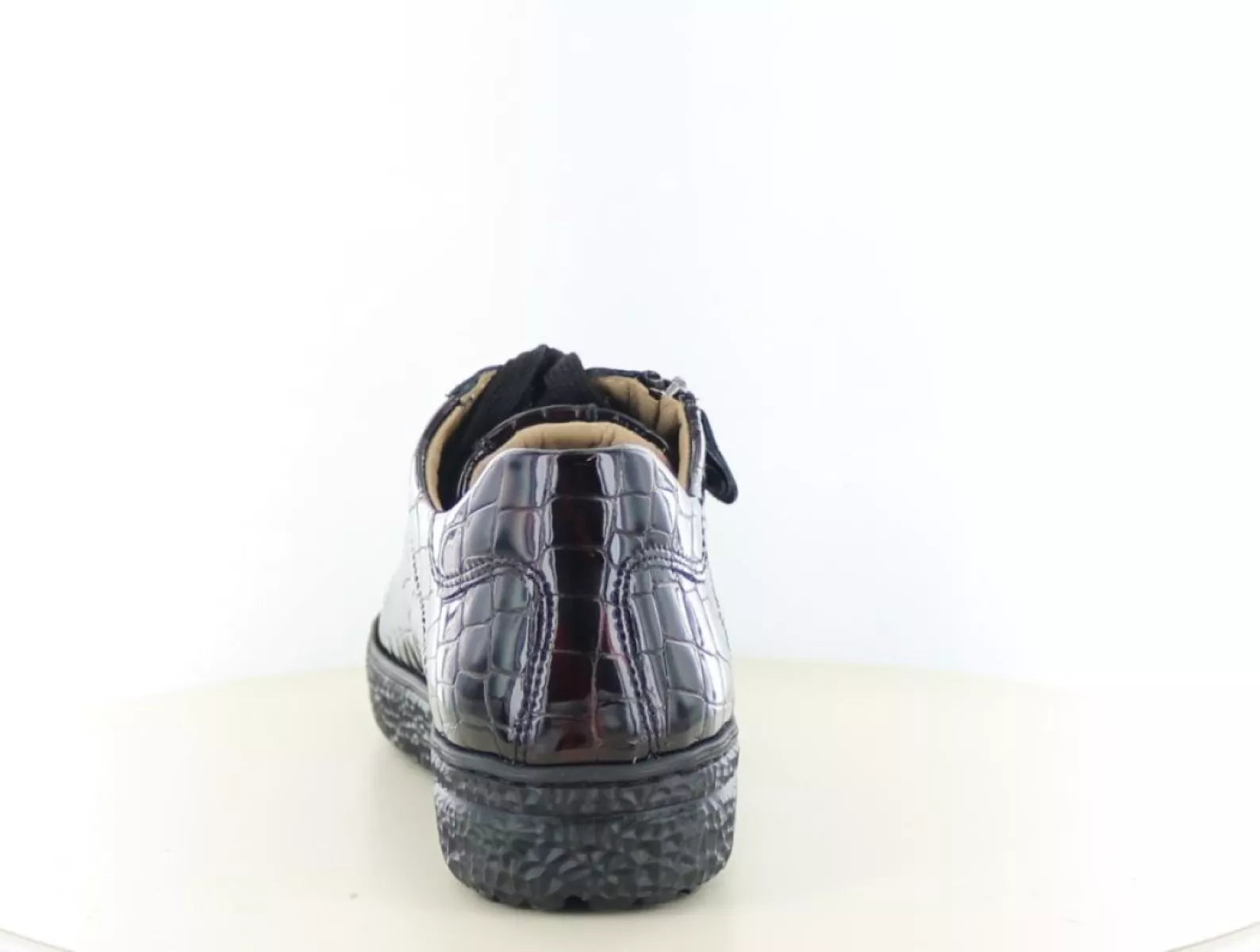 Op zoek naar een modieuze comfortschoen die zowel stijl als functionaliteit biedt? De Hartjes Phil Shoe 16.1402 in bordeaux lakleer is een absolute blikvanger voor elke vrouw die houdt van elegantie én comfort. Het hoogwaardige lakleer met krokodillenstructuur zorgt voor een luxueuze en moderne uitstraling, perfect voor zowel casual als geklede outfits.