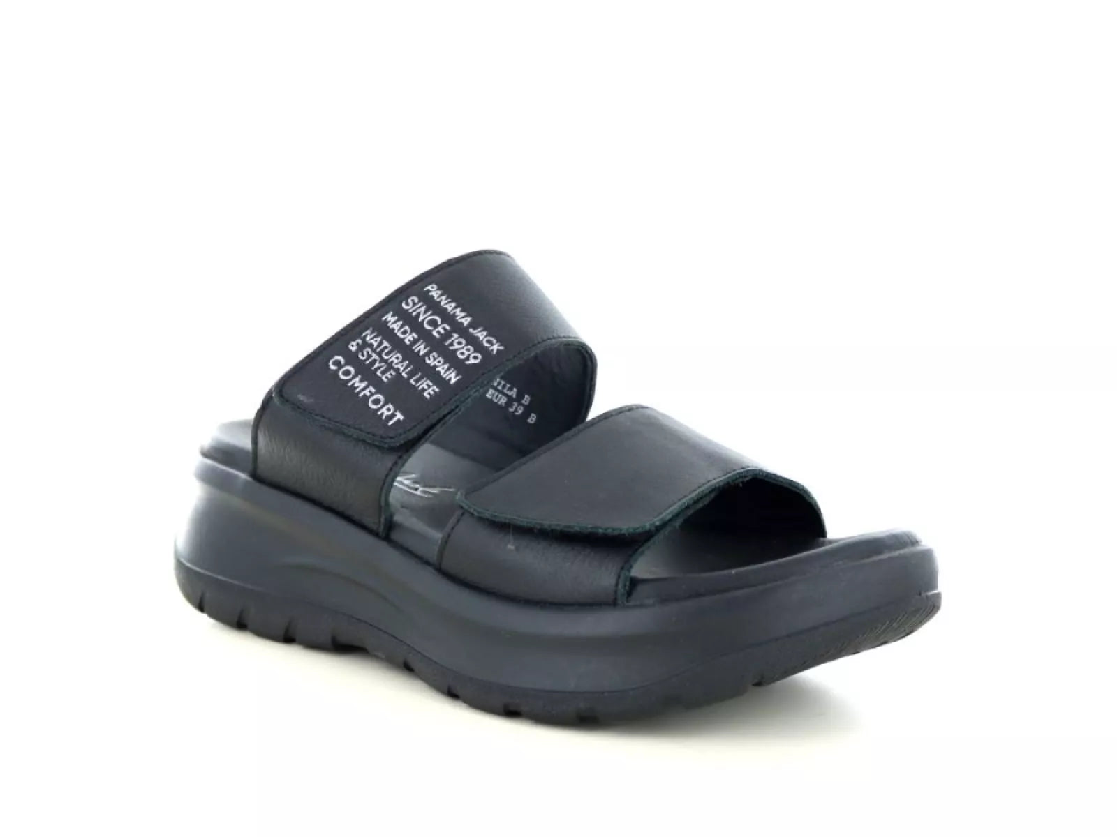 De Nila van Panama Jack is een mooie slipper gemaakt van leer, voor dames. Deze slipper is uitgevoerd in de kleur B2 negro/black. De sluiting is door middel van een instap met klittenband.