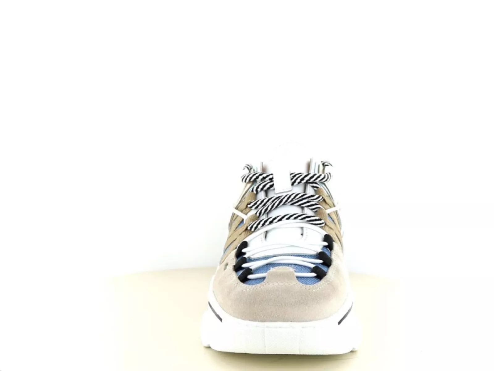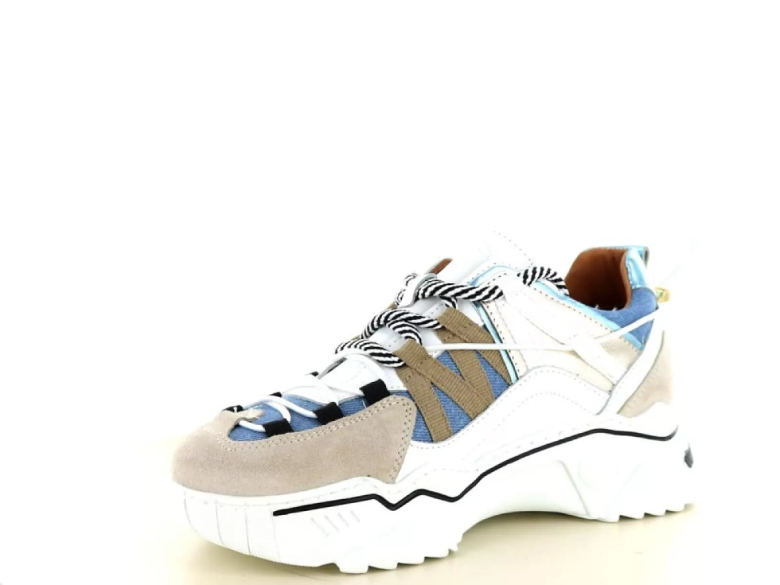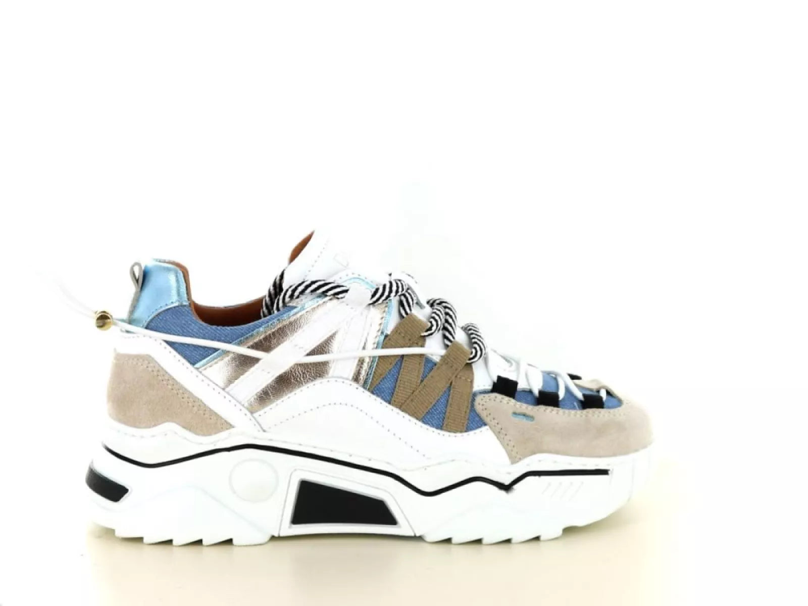 - Stijlvol ontwerp: Trendy damessneaker met een opvallende sand/jeans kleurcombinatie.