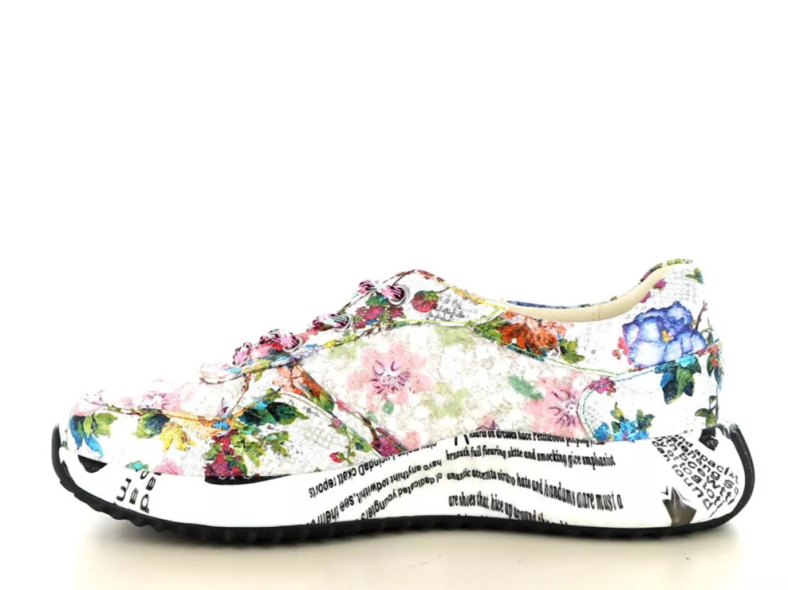 De Laura Vita Burton 05 is een sportieve en elegante veterschoen die het perfecte evenwicht biedt tussen stijl en comfort. Deze schoen, ontworpen met een prachtig bloemrijk motief op een witte achtergrond, is een ideale keuze voor dames die op zoek zijn naar unieke en functionele schoenen.