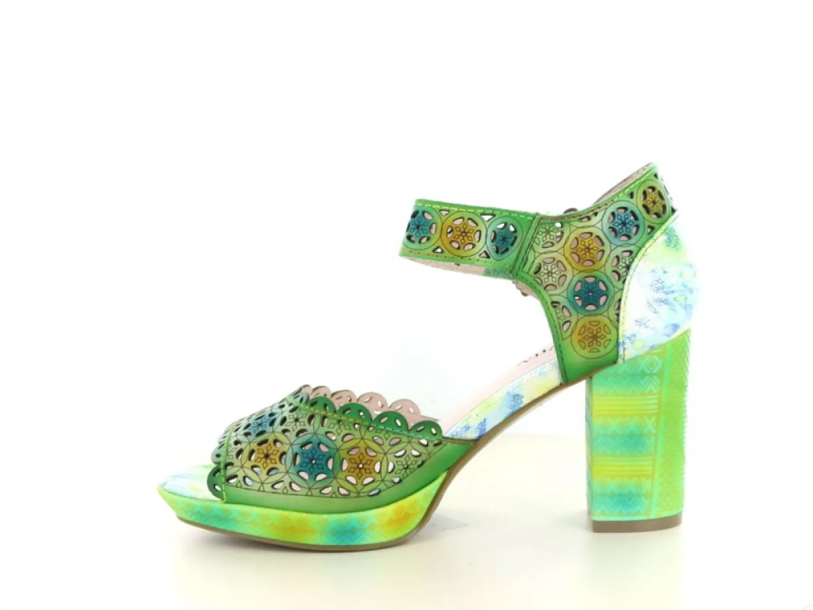 De klittenbandsluiting zorgt voor een gemakkelijke en verstelbare pasvorm, terwijl de zorgvuldig ontworpen hak de benen flatteert zonder in te leveren op comfort. Het unieke ontwerp, geïnspireerd door natuurlijke en etnische invloeden, maakt deze sandaal tot een echte blikvanger. Laura Vita staat bekend om het gebruik van levendige kleuren en gedurfde prints, wat duidelijk terugkomt in dit model.
