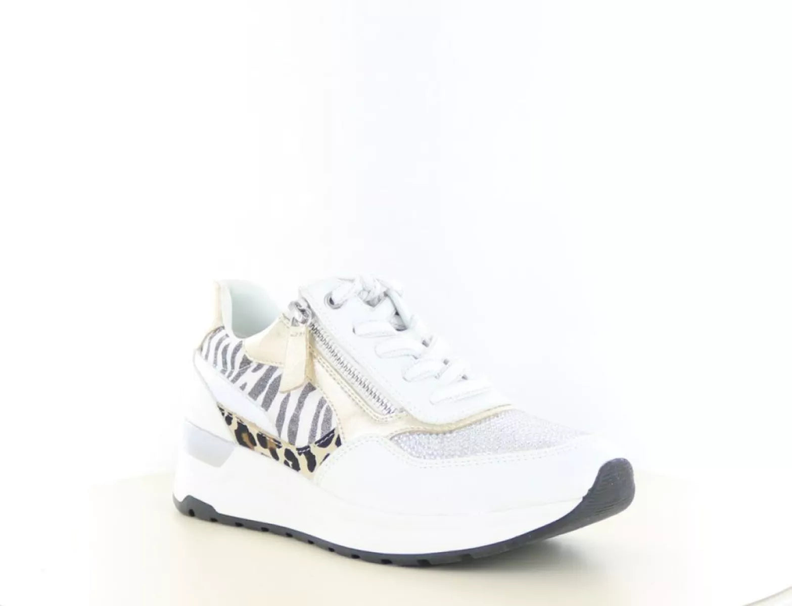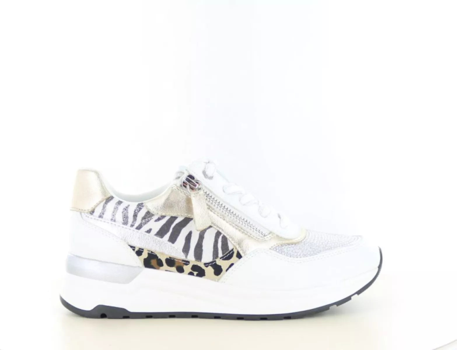 Maak een statement met deze opvallende Marco Tozzi 2/23742-44 sneaker in white combi – een perfecte mix van comfort, stijl en flair. Deze damessneaker is een absolute eyecatcher dankzij de speelse combinatie van zebra- en panterprint, metallic accenten en frisse witte basiskleur. Ideaal voor wie houdt van een modieuze look met een stoer randje.