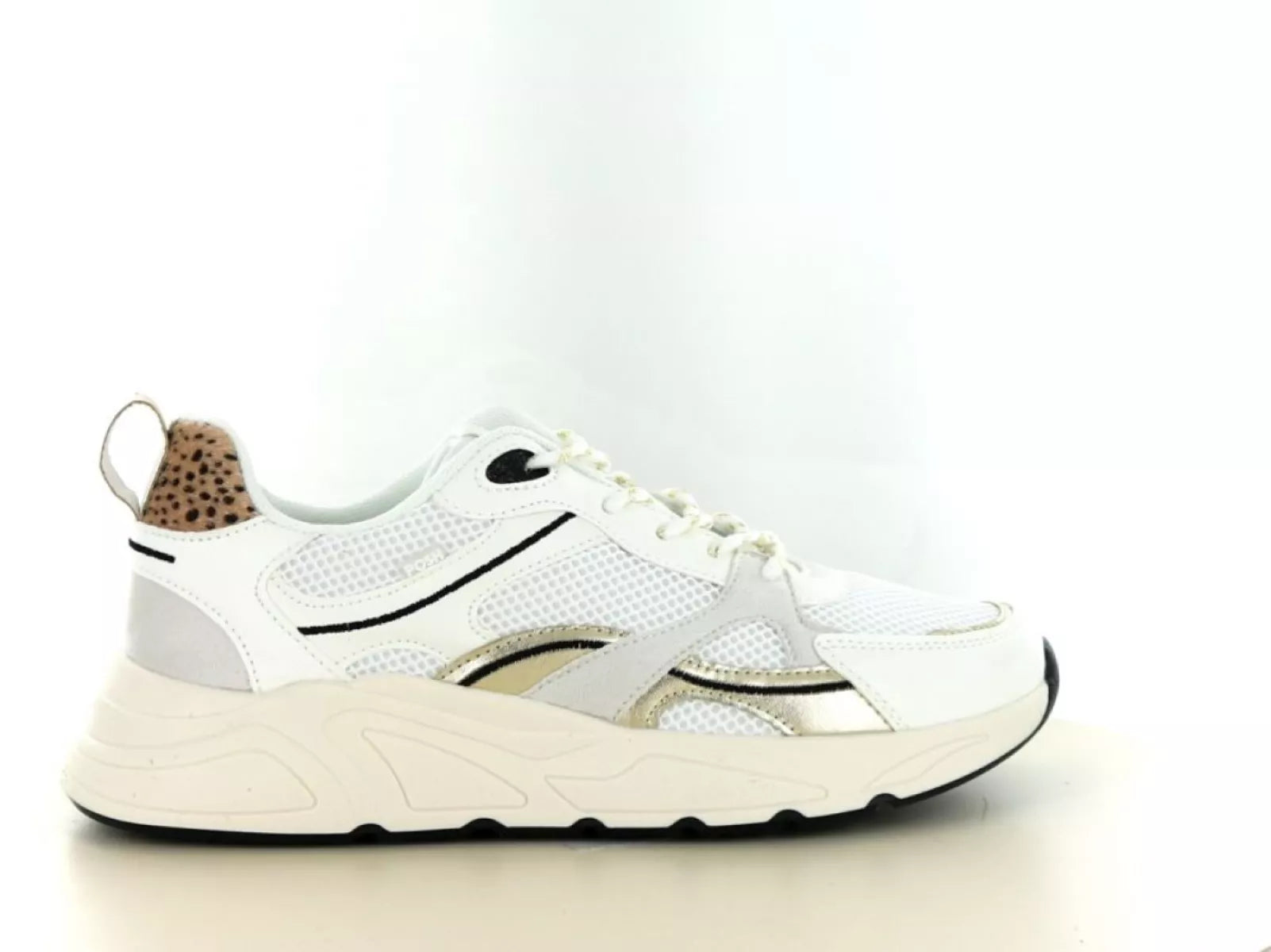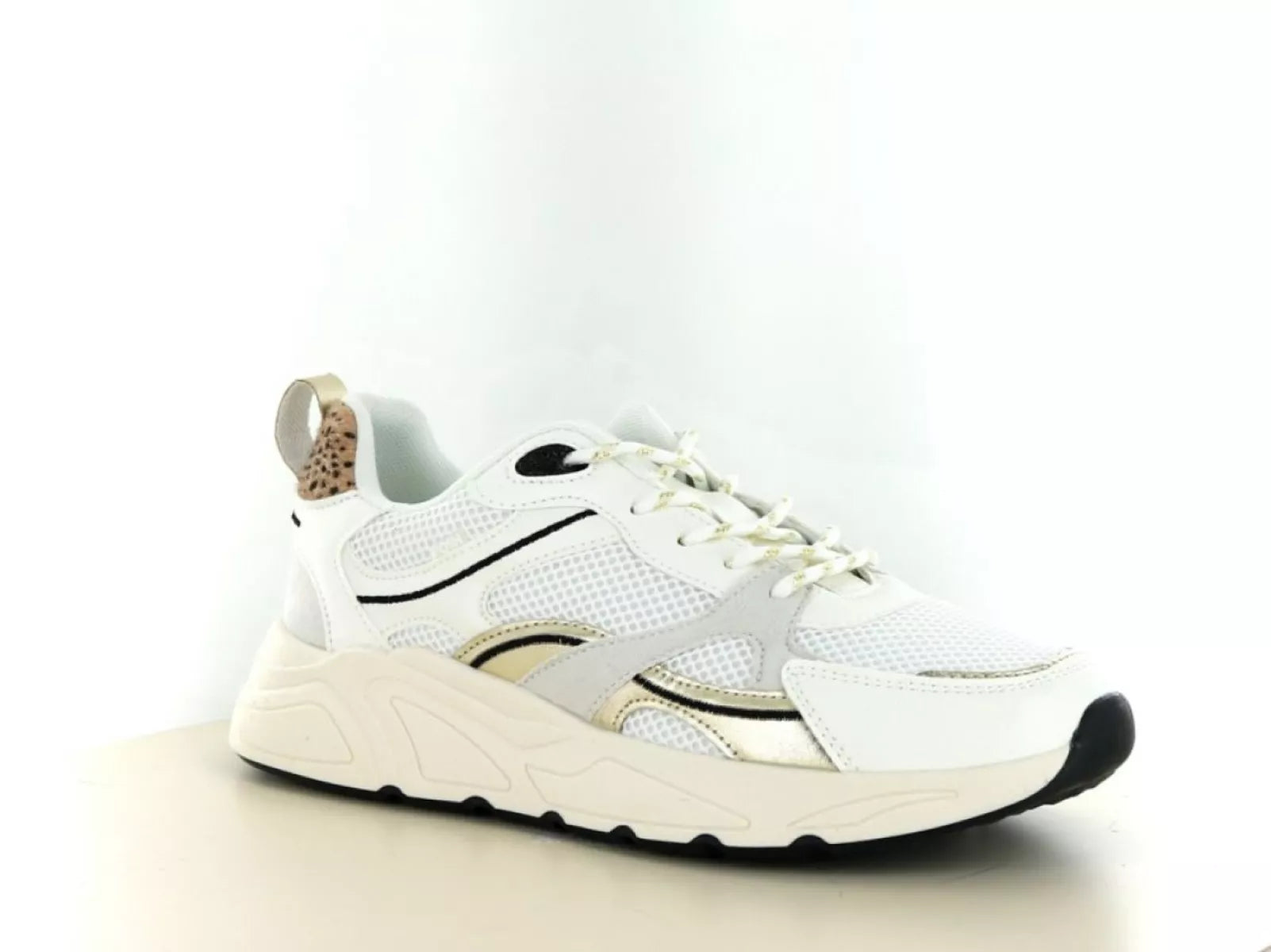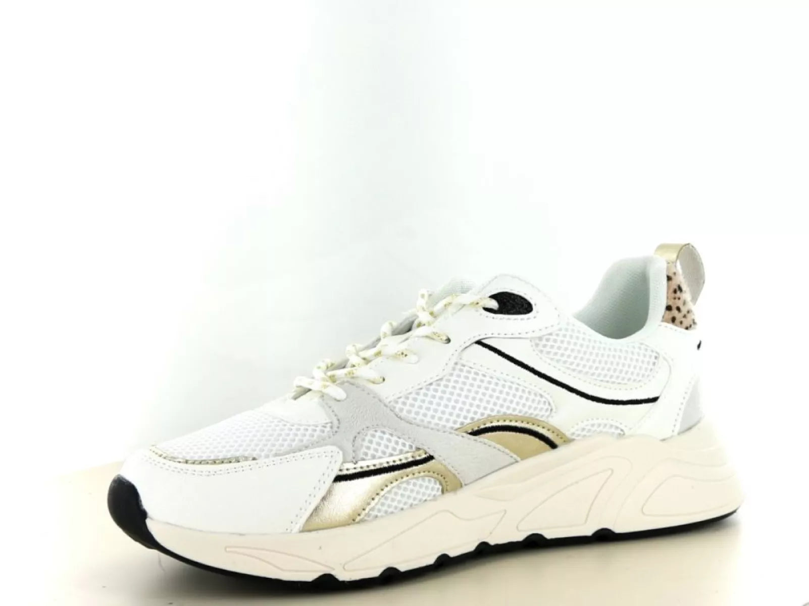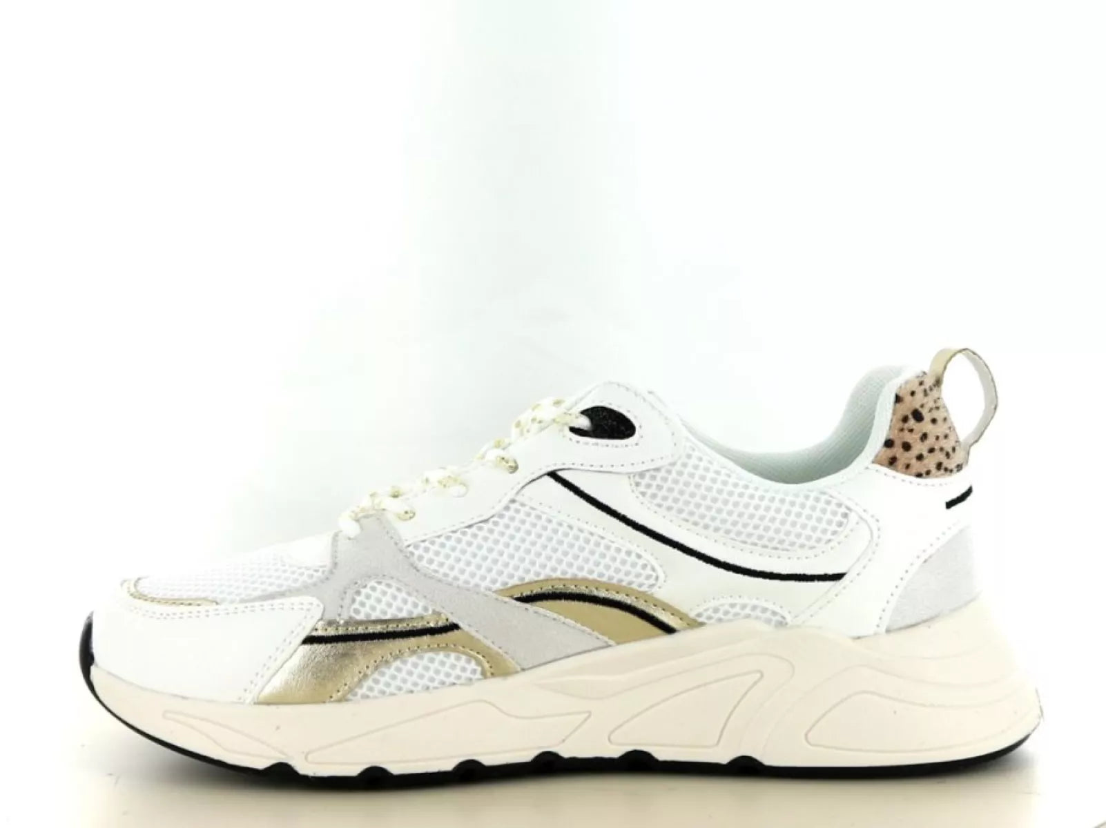 - Trendy ontwerp: Stijlvolle witte sneaker met gouden accenten, perfect voor diverse outfits.