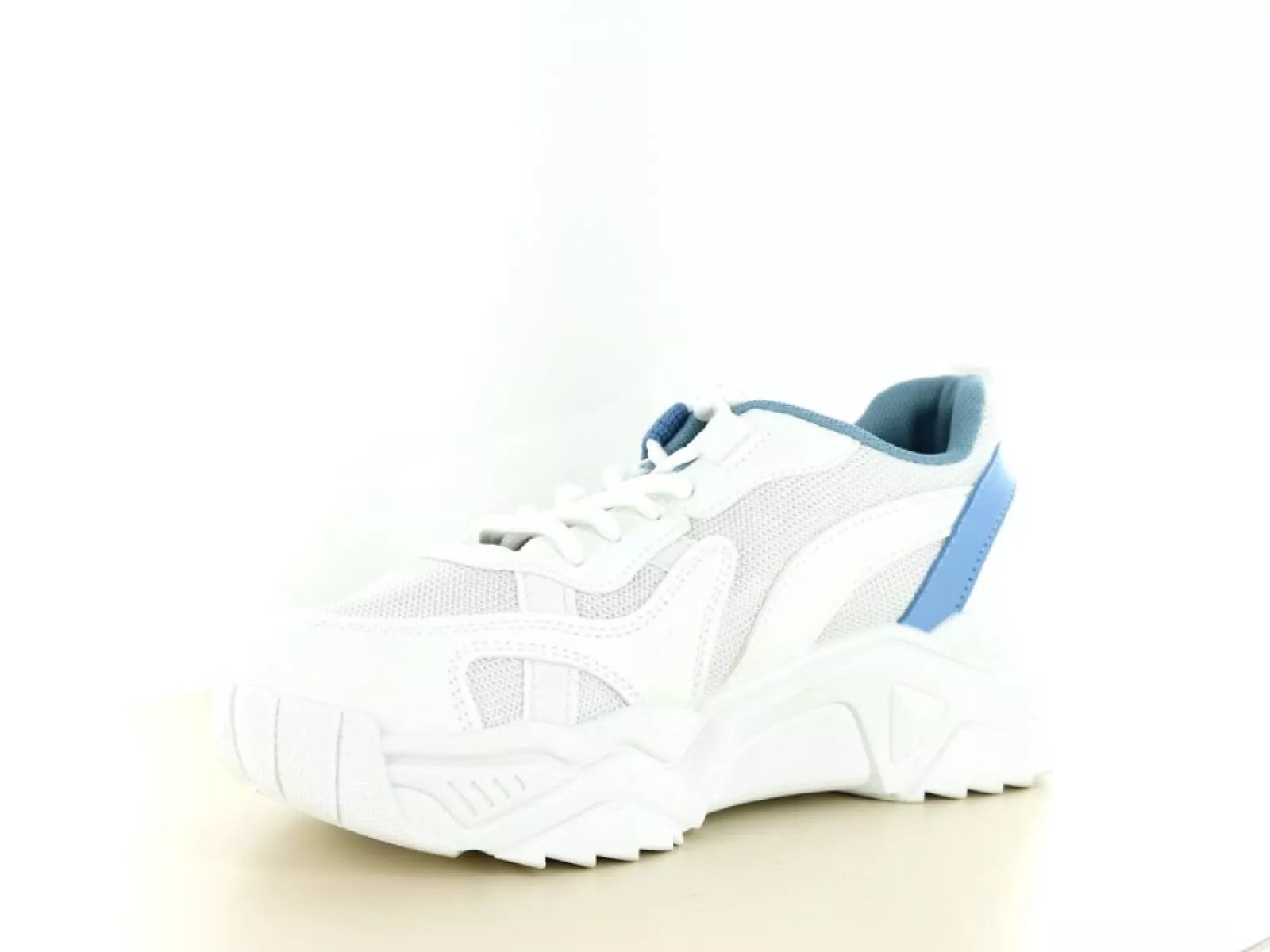 De CSUMI sneaker van Posh by PS Poelman is een elegante keuze voor dames die op zoek zijn naar zowel stijl als comfort. Gemaakt van hoogwaardig synthetisch materiaal, straalt deze sneaker in de kleur wit/lichtblauw moderniteit uit. De sluiting met veters zorgt voor een stevige pasvorm, terwijl het ontwerp toch moeiteloos aan en uit te trekken is.