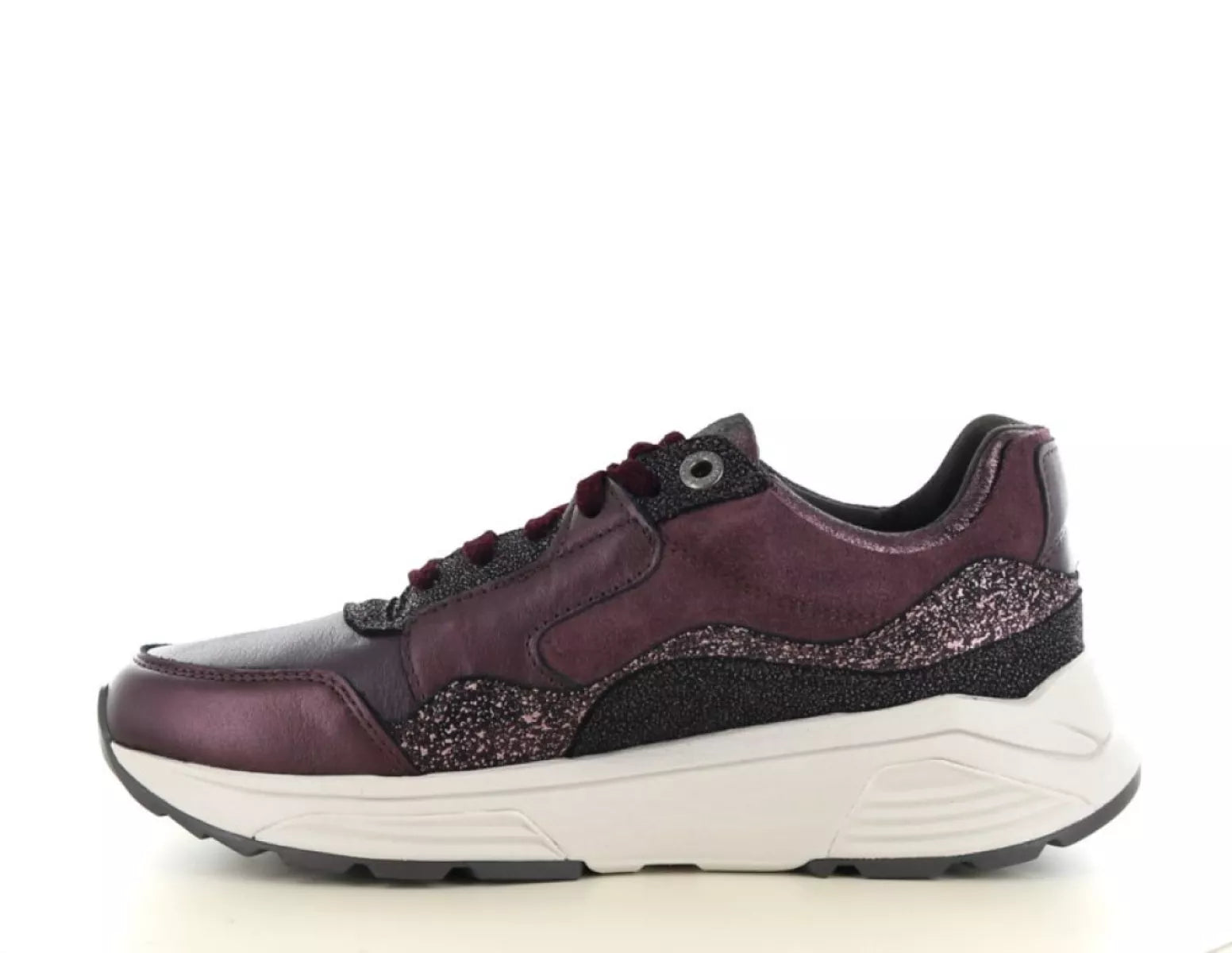 - Luxe dames sneaker van hoogwaardig leer en suède in diepe bordeaux- en zwarttinten