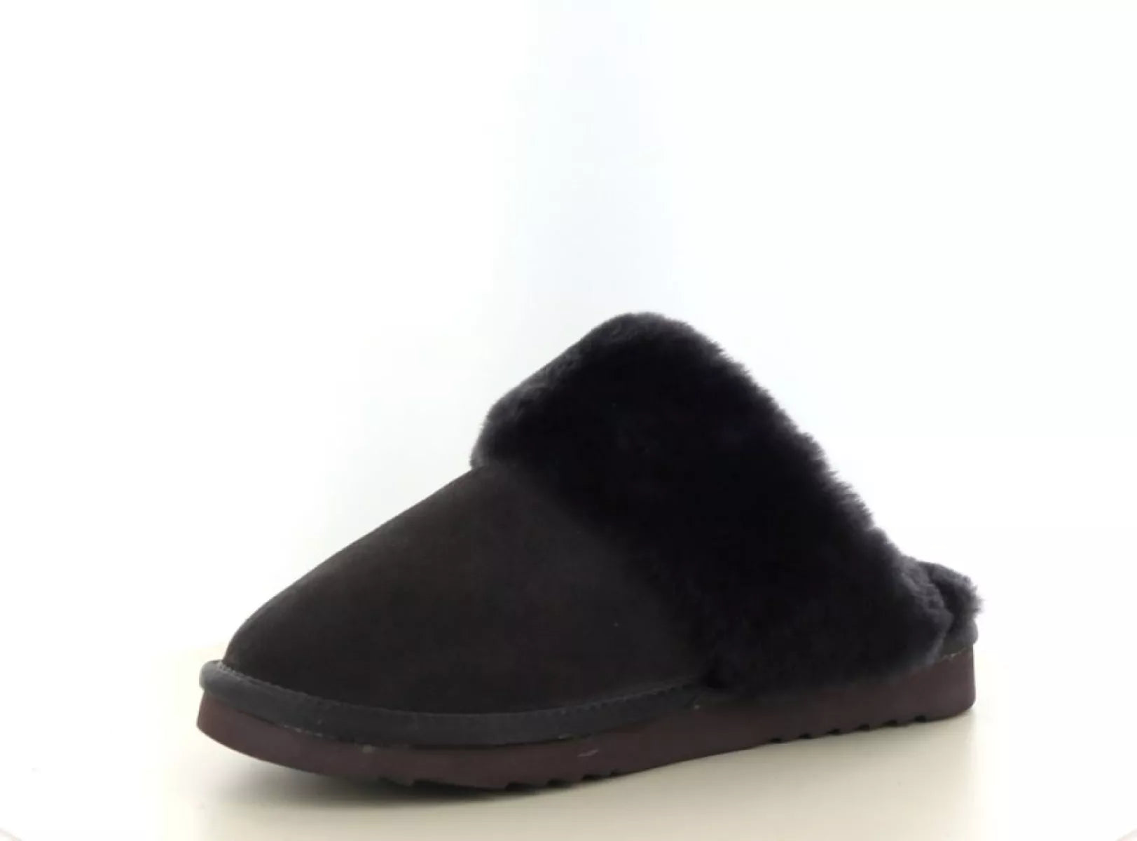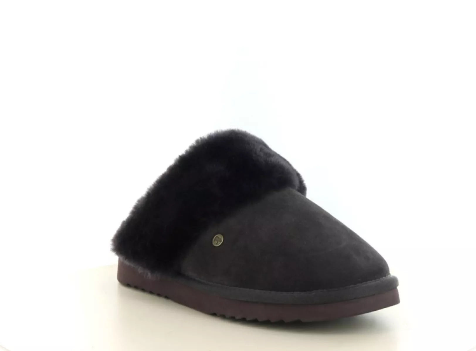 Warmbat Flurry Woman – Suède pantoffel met wolkraag in choco