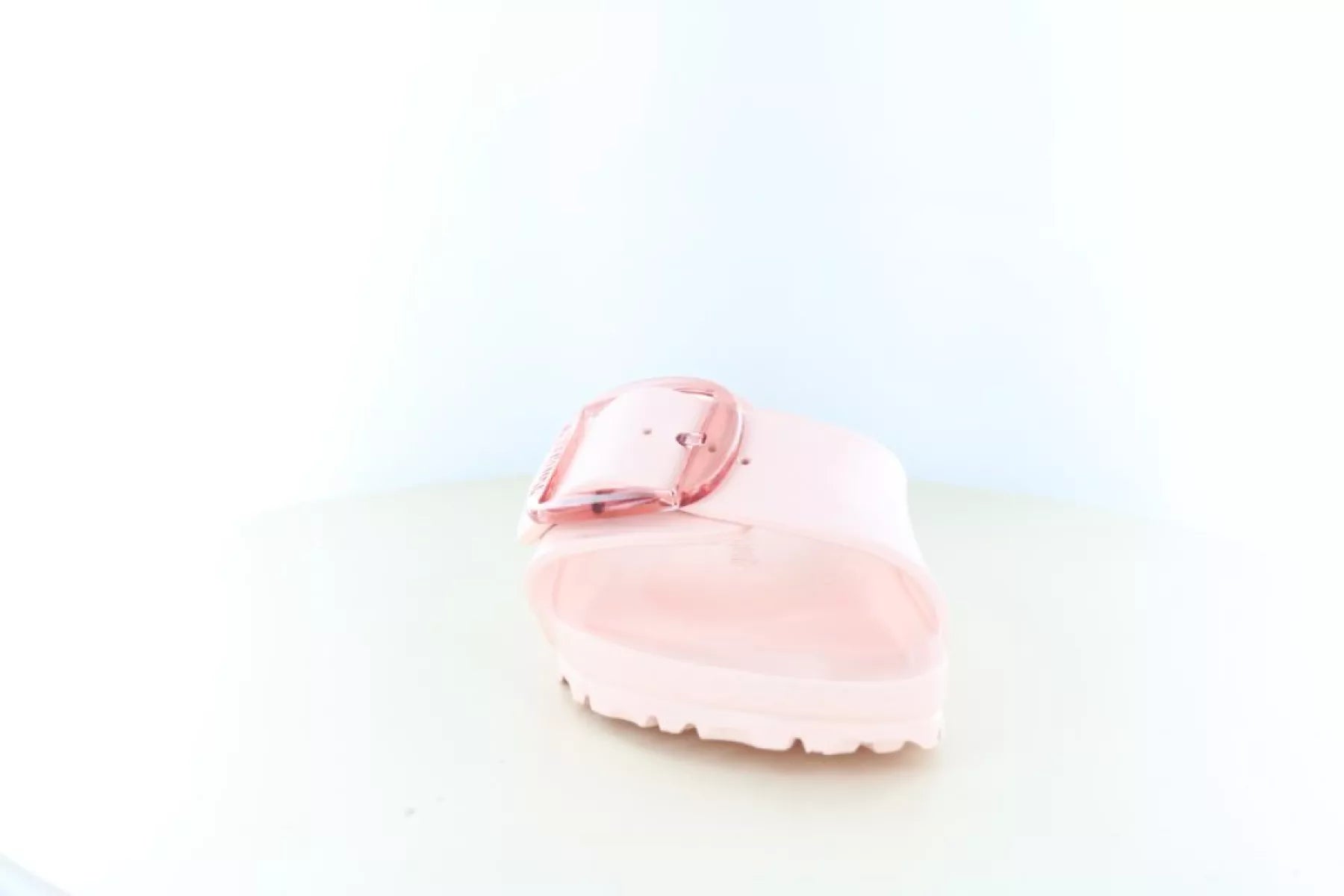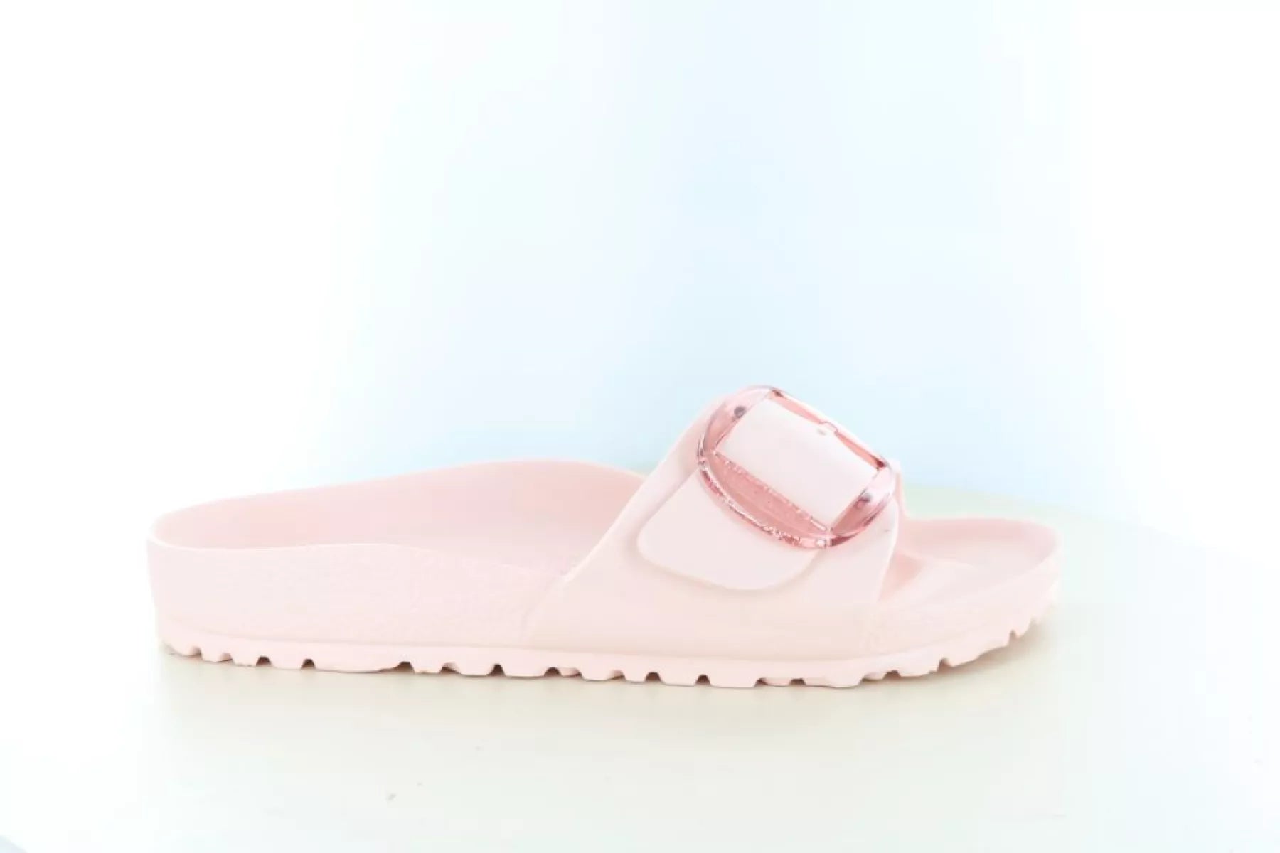 De Birkenstock Madrid Big Buckle EVA slipper in light rose is de perfecte mix van fashion en functionaliteit. Deze stijlvolle dames slipper valt direct op door de grote, transparante gesp en de zachte roze kleur, waarmee je elke zomerse outfit een frisse en trendy uitstraling geeft.