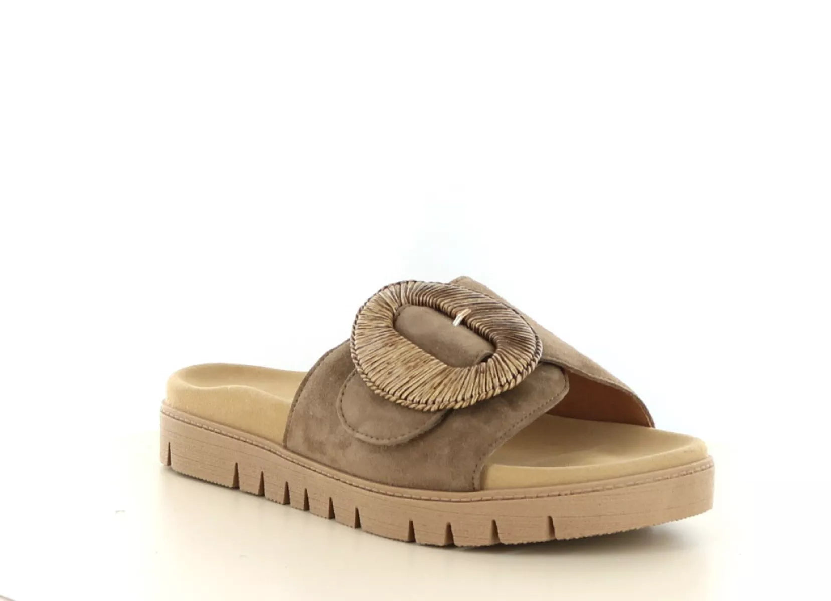 De Gabor 83.712 in de kleur 14 Peanut is een stijlvolle en comfortabele dames slipper die perfect past binnen een zomerse garderobe. Deze suède instapper combineert een luxe uitstraling met het vertrouwde comfort waar Gabor om bekendstaat.