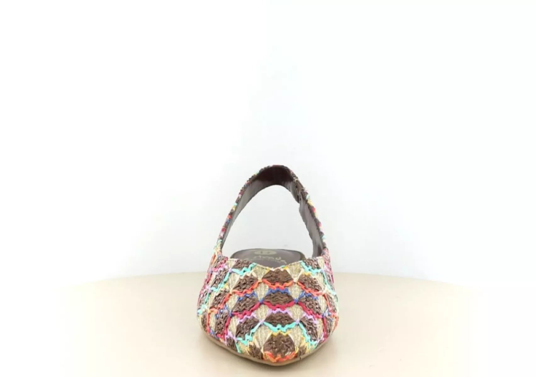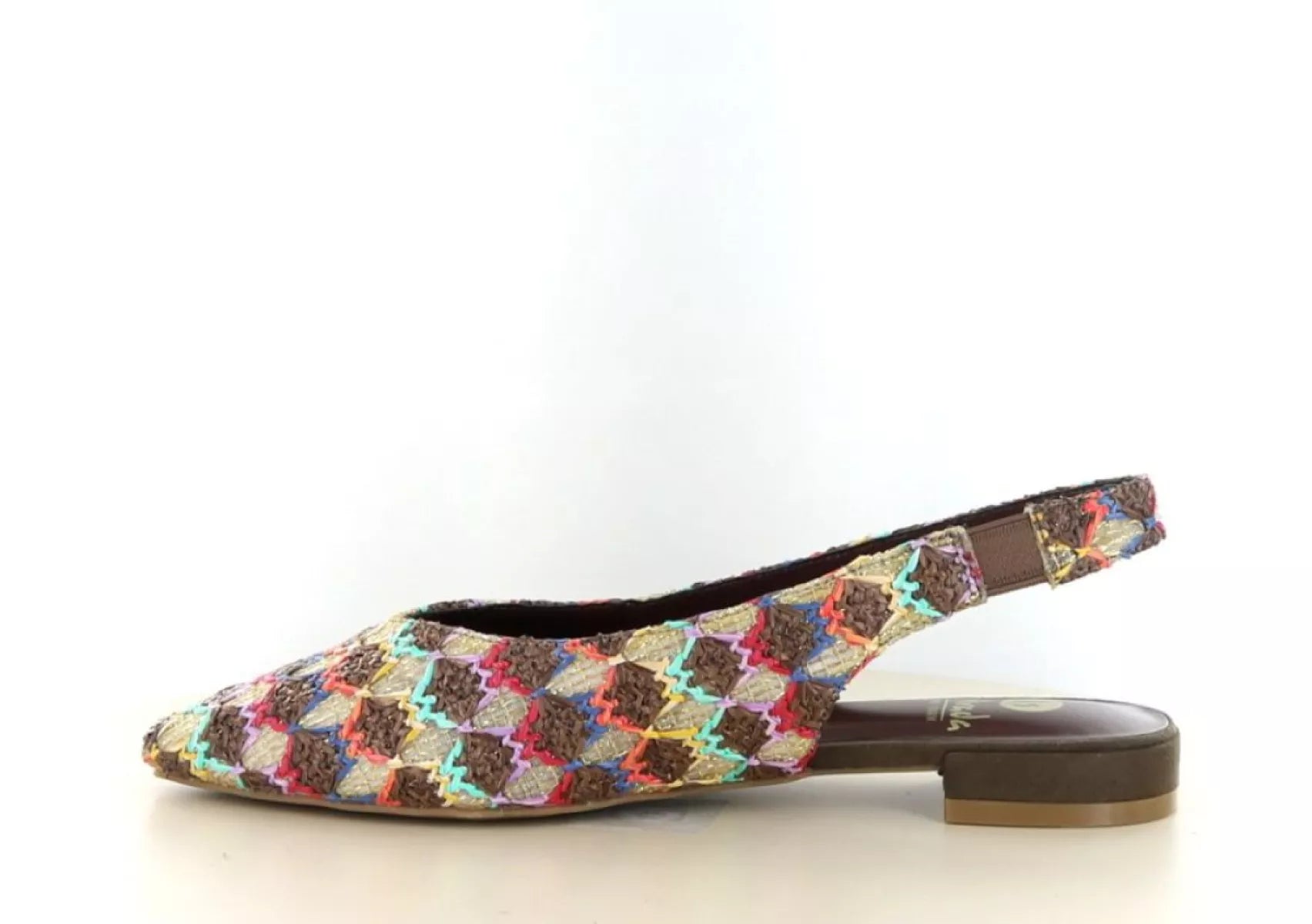 Het bovenwerk heeft een geweven look in verschillende zomerse tinten, wat zorgt voor een frisse en modieuze uitstraling. Ideaal om uw outfit nét dat beetje extra te geven. Draag deze slingback onder een luchtige jurk, een linnen broek of een zomerse jeans voor een vrouwelijke en trendy look.