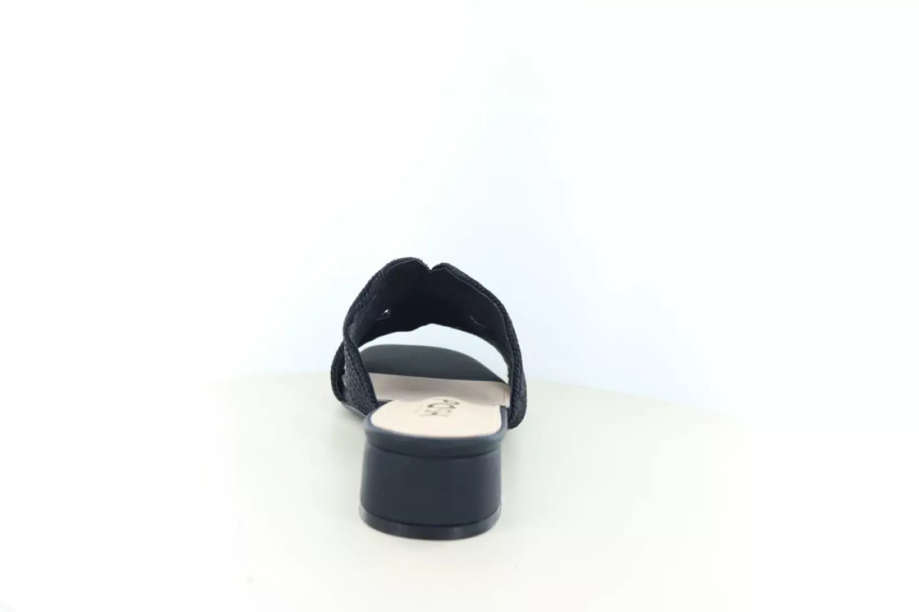 De brede, gekruiste banden van imitatieleer geven het muiltje een luxe look en zorgen tegelijkertijd voor een comfortabele pasvorm. Het open design maakt de schoen luchtig en ideaal voor warme dagen, terwijl de lage hak zorgt voor een subtiele verhoging en extra draagcomfort.