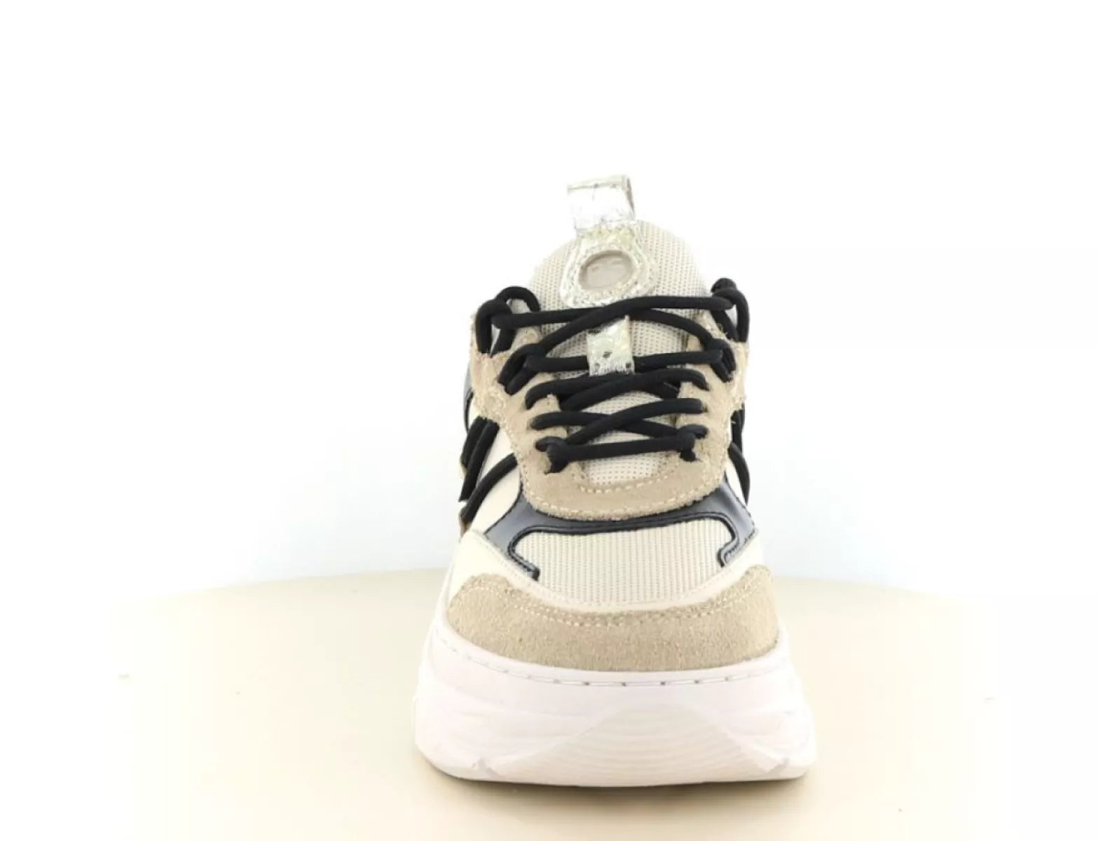 Het synthetische bovenwerk is onderhoudsvriendelijk en licht van gewicht. De mix van gladde panelen, mesh details en suède-look overlays geeft deze sneaker een dynamisch en eigentijds karakter. De combinatie van zandkleur, zwart en metallic accenten sluit perfect aan bij de huidige sneakertrends.