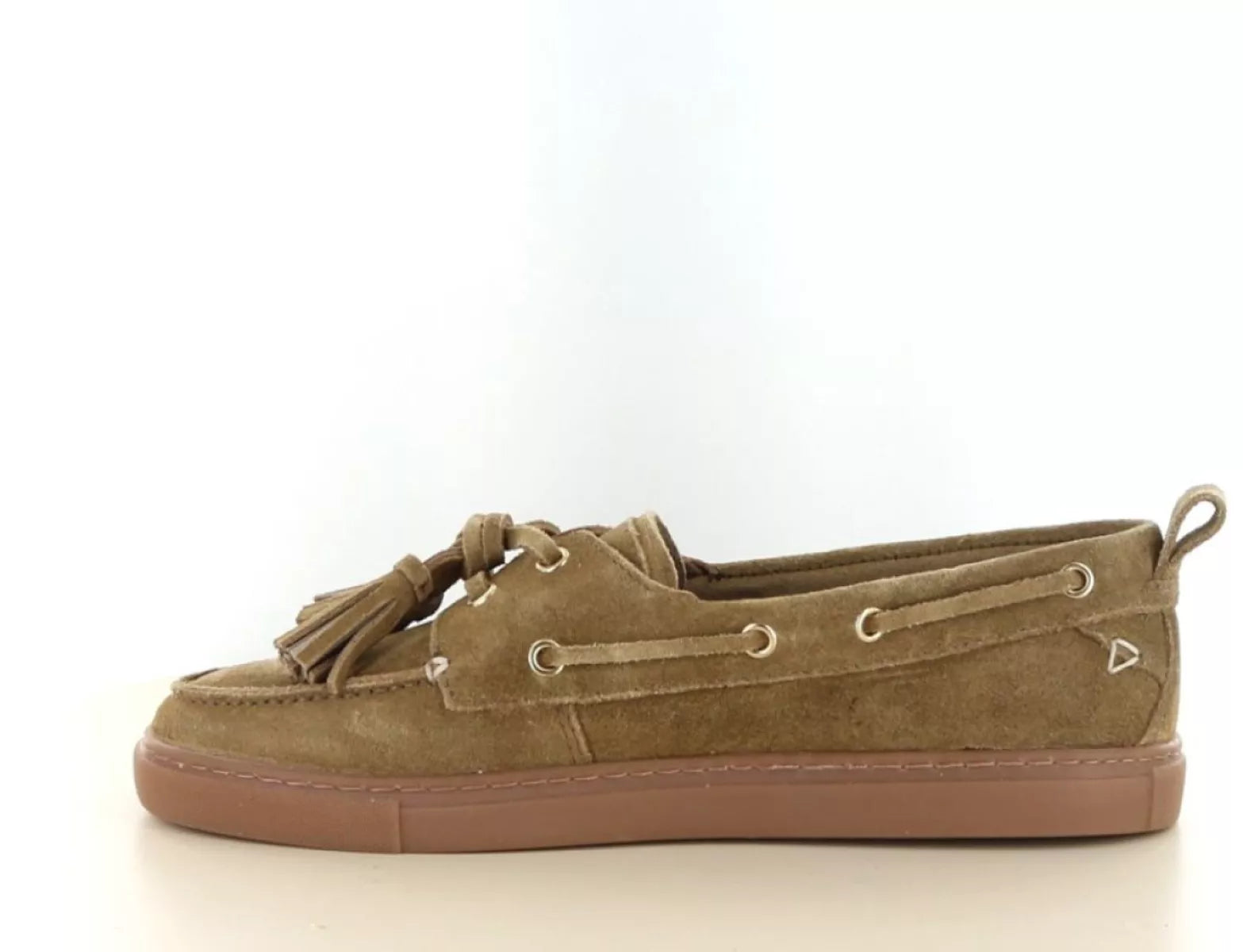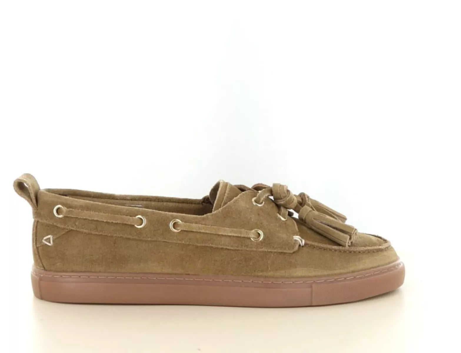 Het bovenwerk is uitgevoerd in soepel suède dat zich comfortabel naar uw voet vormt. De decoratieve veter met kwastjes geeft de schoen een speels, vrouwelijk detail, terwijl de subtiele metalen oogjes zorgen voor een verfijnde afwerking. De licht verhoogde, sportieve rubberzool geeft deze instapper een moderne uitstraling en zorgt voor prettig loopcomfort.