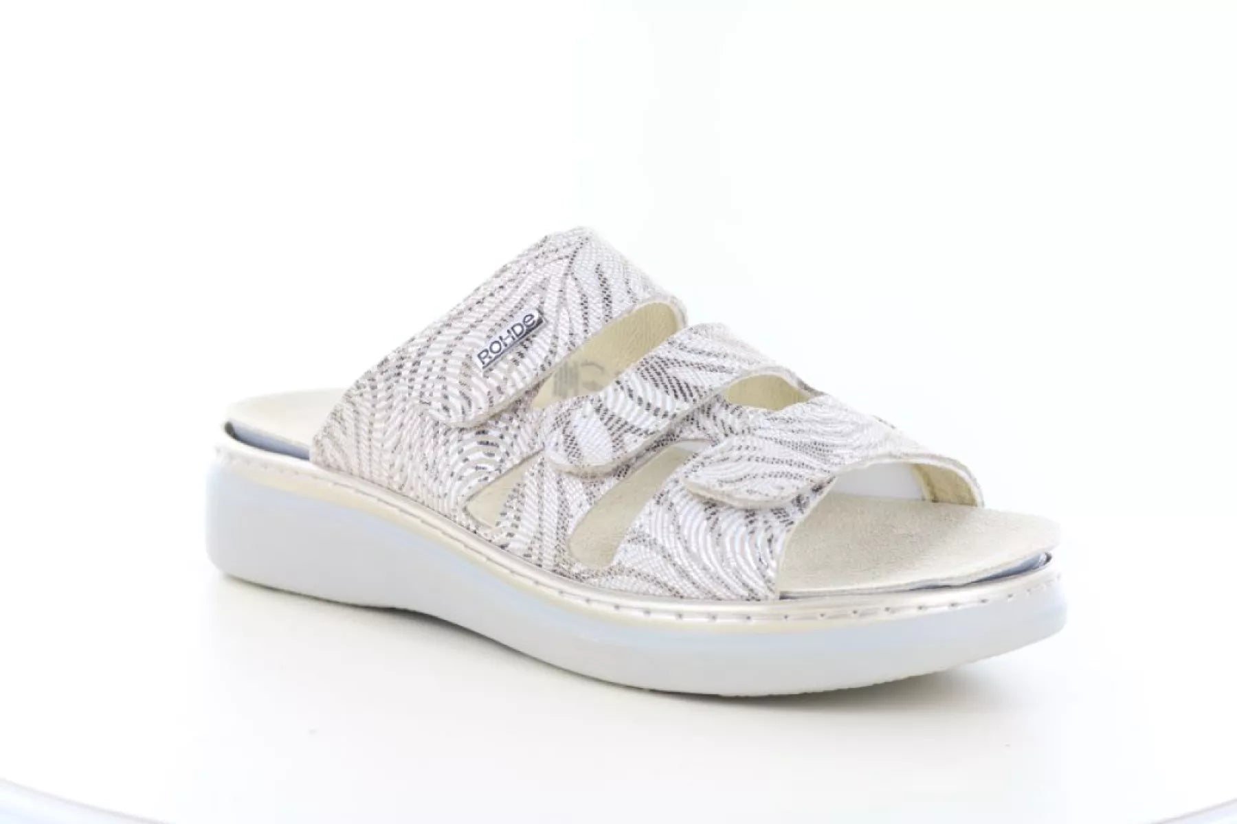 De Rohde 5221 slipper in de kleur kreide biedt een perfecte balans tussen comfort en een elegante, frisse uitstraling. Het subtiele printpatroon in combinatie met de lichte kleur geeft deze slipper een moderne en verzorgde look die gemakkelijk te combineren is met zomerse outfits.