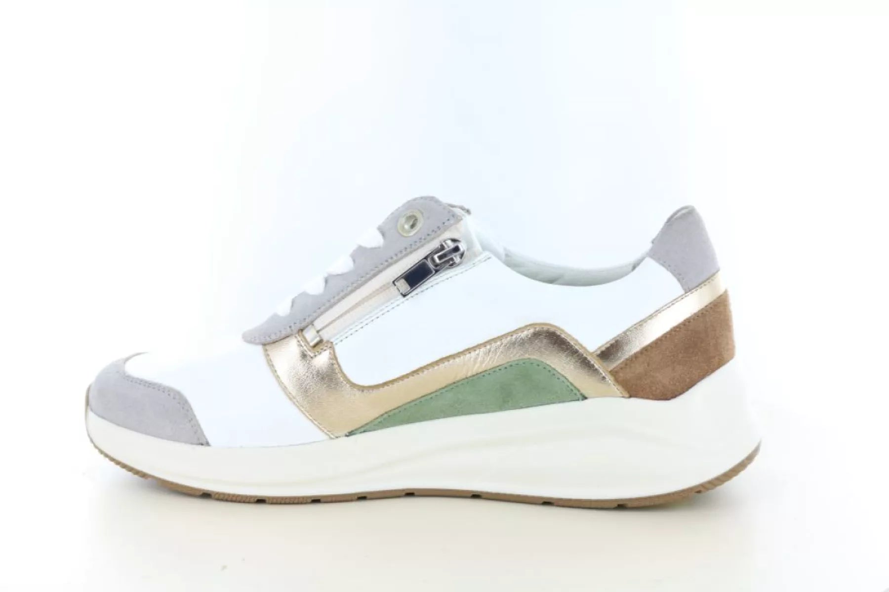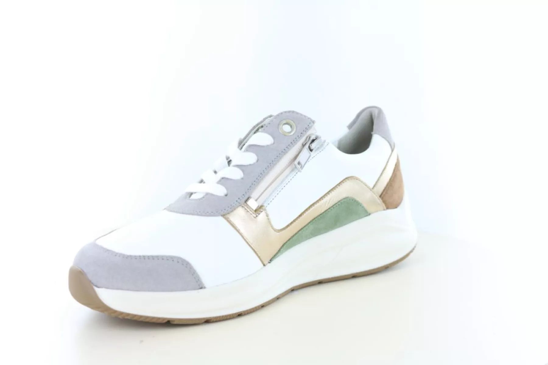 De Solidus 54512 dames sneaker is dé perfecte keuze voor wie comfort, ondersteuning en stijl wil combineren. Deze hoogwaardige leren sneaker in een frisse multi-kleur uitvoering straalt niet alleen klasse uit, maar biedt ook een uitzonderlijke pasvorm voor bredere voeten.