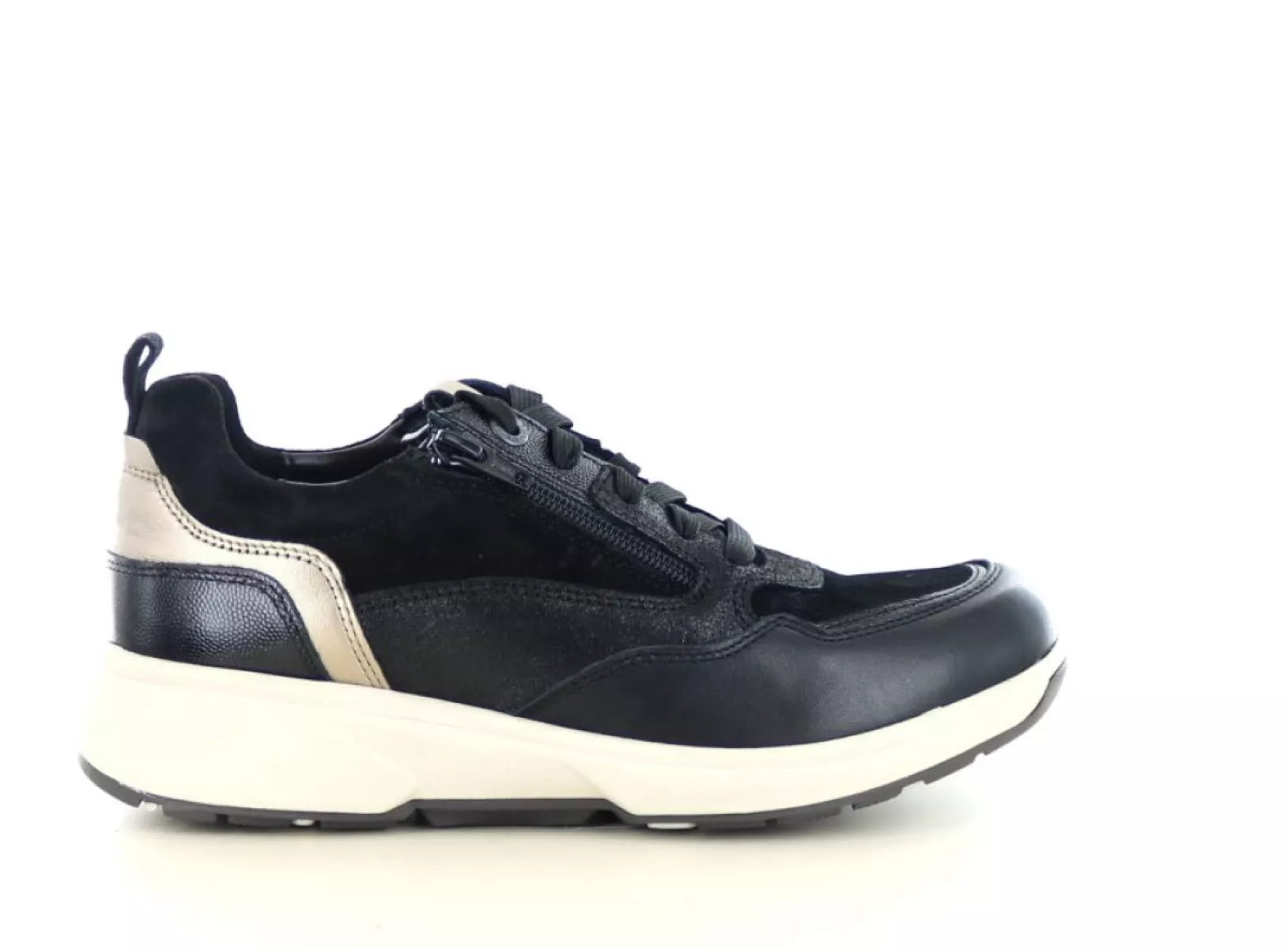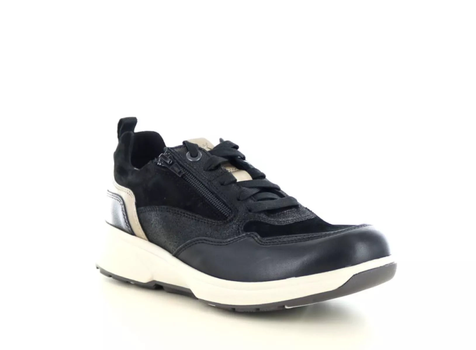 Stap stijlvol én comfortabel de dag door met de Xsensible Stretchwalker 30215.2 Grenoble – een moderne damesveterschoen in zwart leer en nubuck met een metallic accent op de hiel. Deze sportieve en tegelijk elegante schoen is speciaal ontworpen voor vrouwen die veel onderweg zijn, comfort belangrijk vinden en toch een modieuze uitstraling willen behouden.