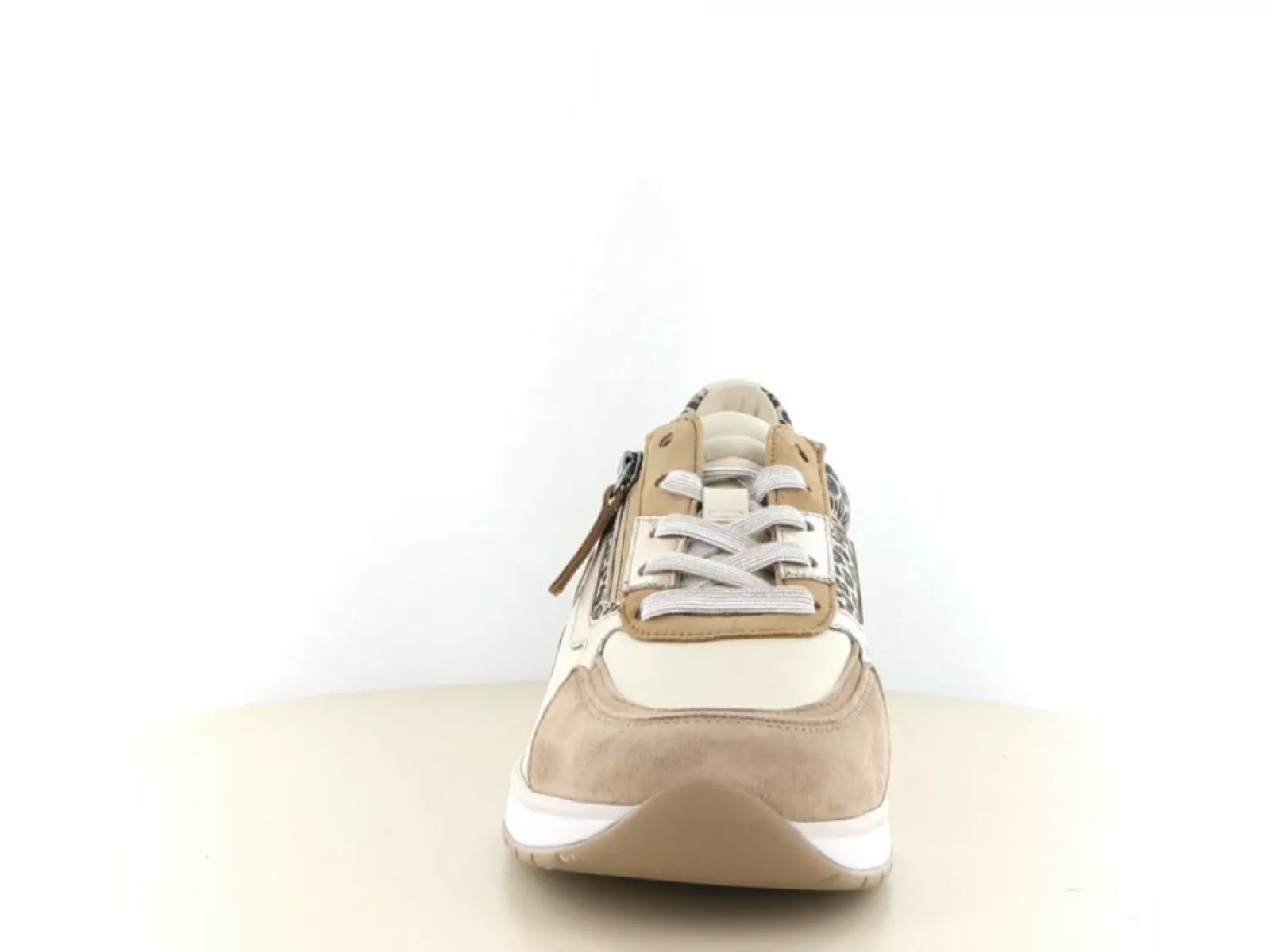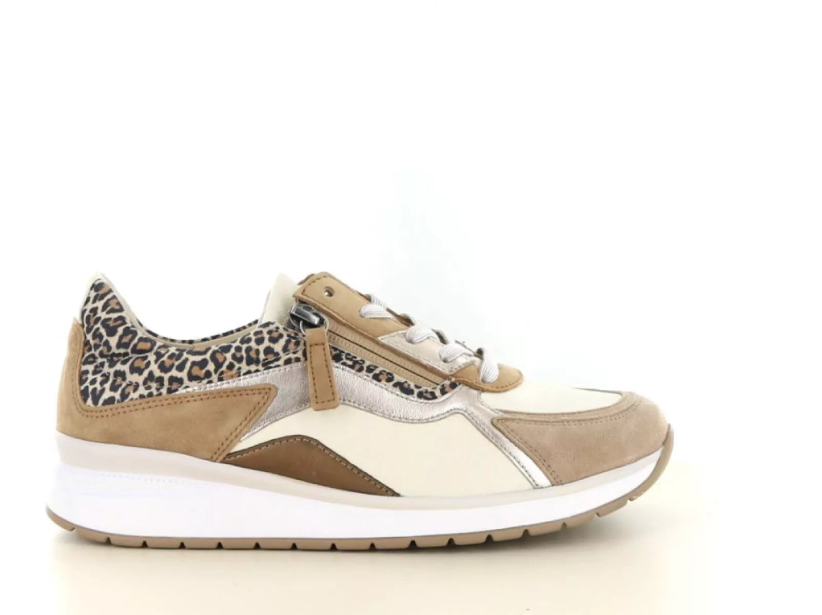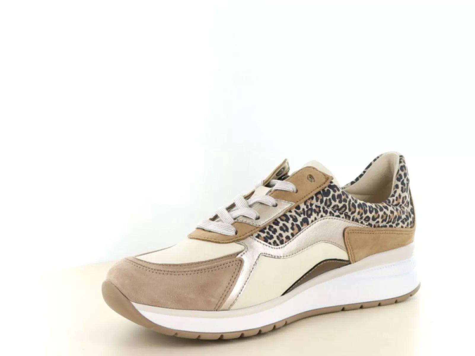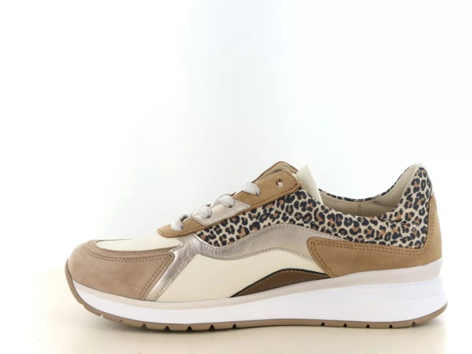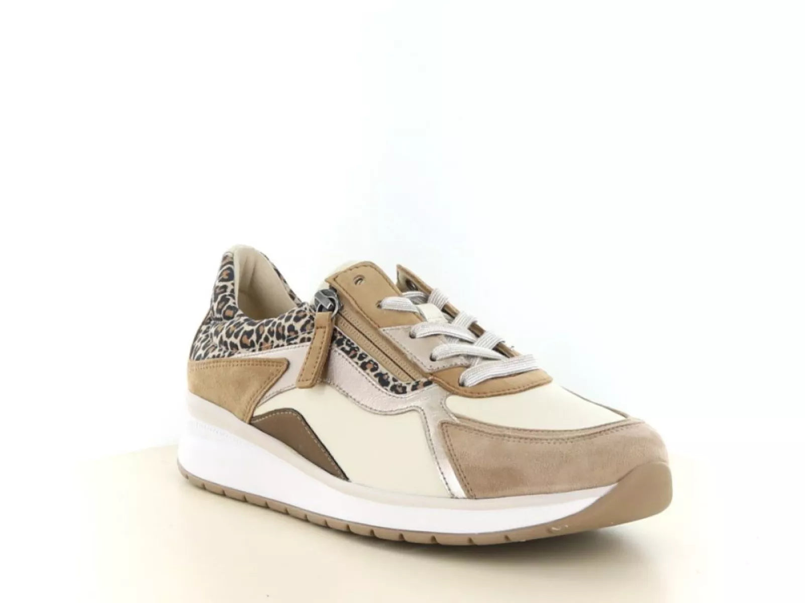 De Gabor 86.305 in de kleur 20 panna/puder is een modieuze en comfortabele dames veterschoen met een extra brede pasvorm (wijdte K). Deze sneaker combineert zachte tinten zoals crème, puder en beige met een subtiel leopardaccent, wat zorgt voor een stijlvolle en eigentijdse uitstraling. Perfect voor dames die comfort zoeken zonder concessies te doen aan uitstraling.