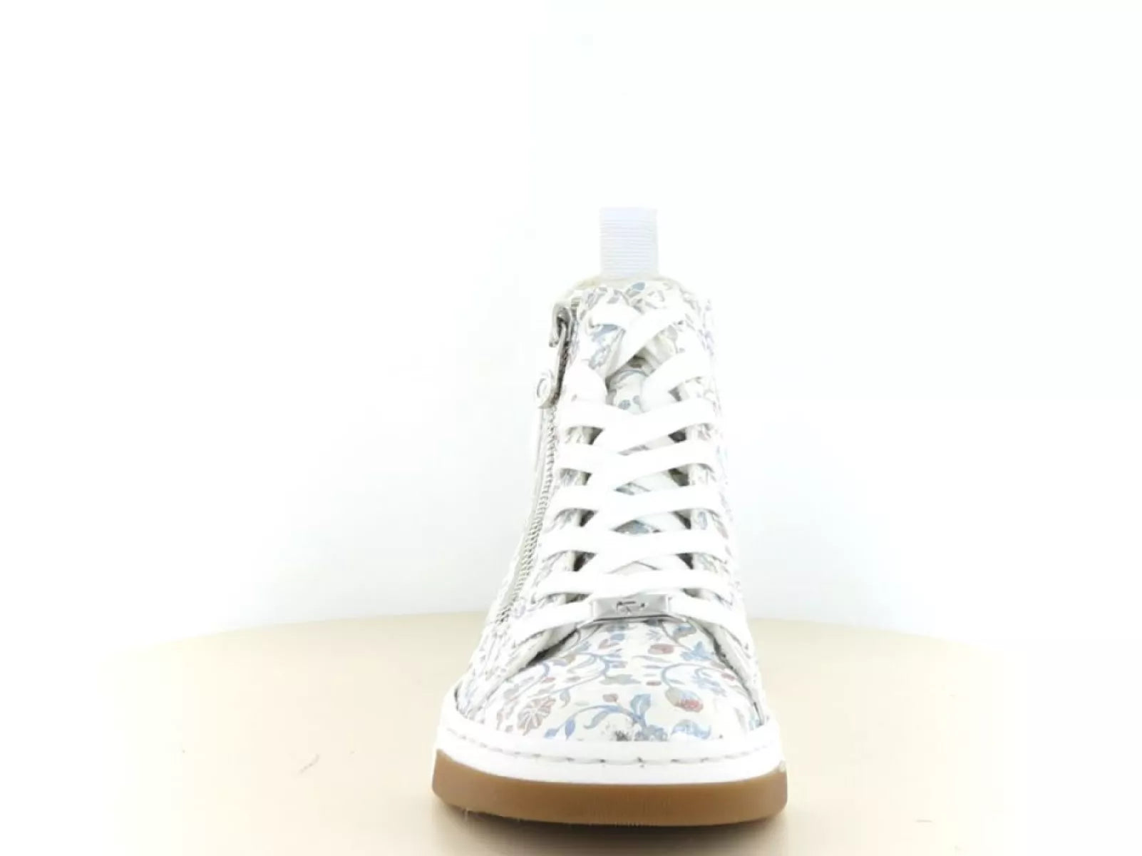 De Rieker N3945 wijdte G in de kleur 92 weiss/multi is een stijlvolle halfhoge dames veterschoen die comfort en een speelse uitstraling perfect combineert. Het frisse witte leer met subtiele bloemenprint geeft deze sneaker een unieke, zomerse look die moeiteloos te combineren is met zowel een jeans als een jurk.