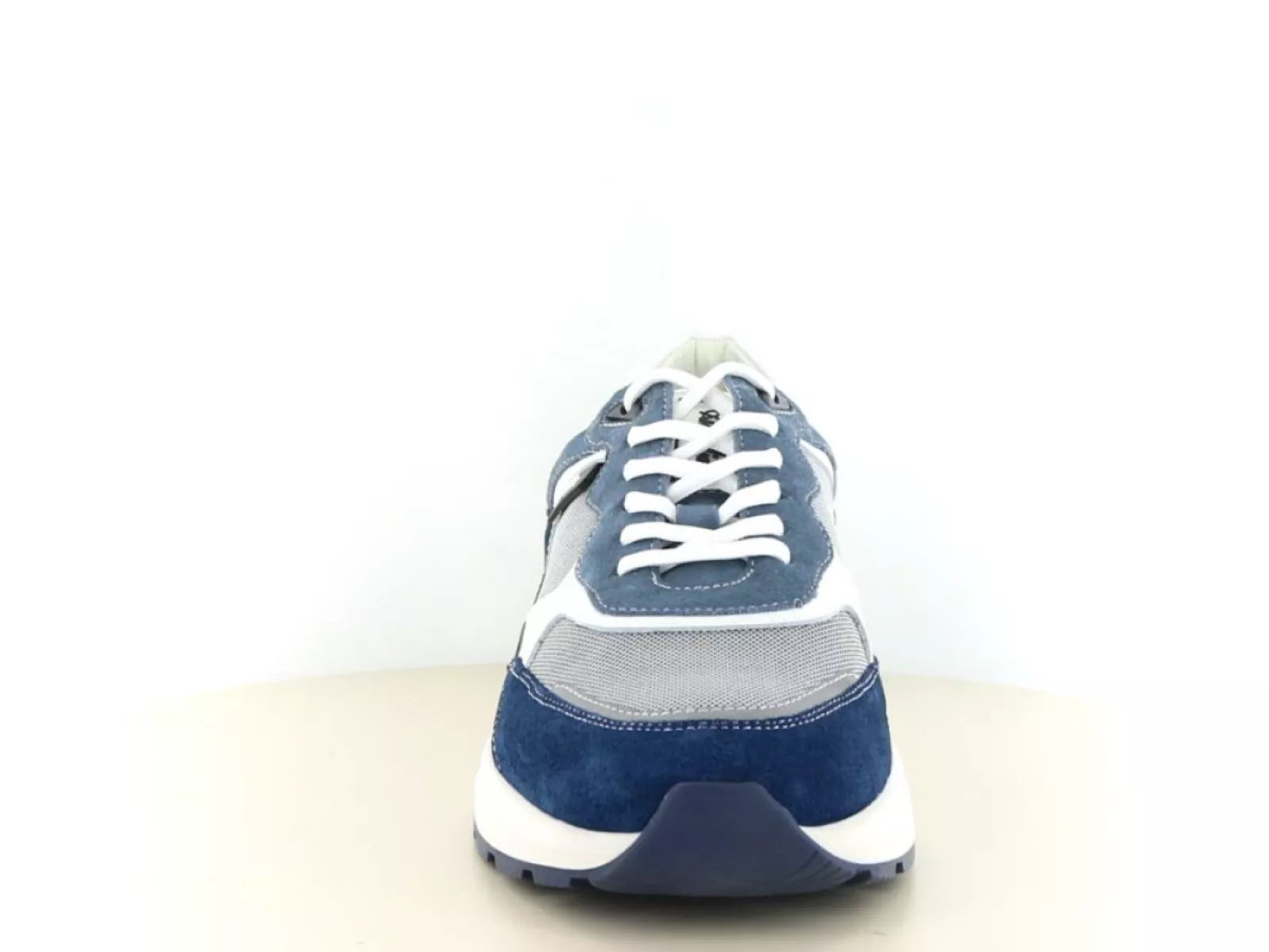 Dankzij de combinatie van soepel leer, zacht suède en ademende mesh krijgt deze herenschoen niet alleen een dynamische uitstraling, maar ook een prettig voetklimaat. De frisse kleurencombinatie van grijs, blauw en wit maakt deze sneaker veelzijdig en makkelijk te combineren met zowel jeans als een casual chino.