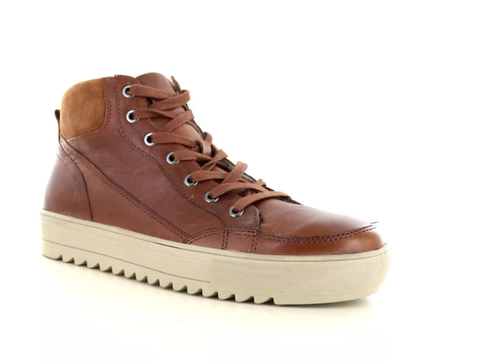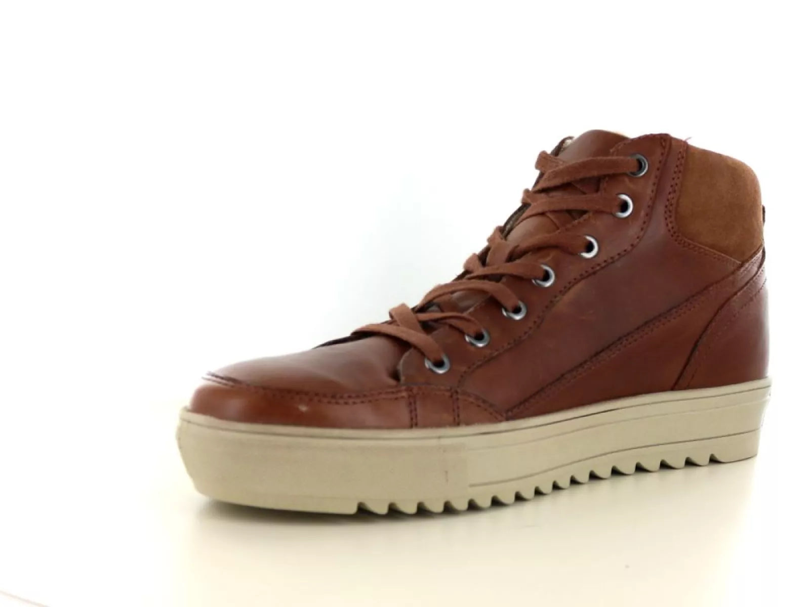 De sneaker is verkrijgbaar in de kleur Brusciato/cognac bruin, een warme en veelzijdige kleur die gemakkelijk te combineren is met verschillende kledingstijlen.