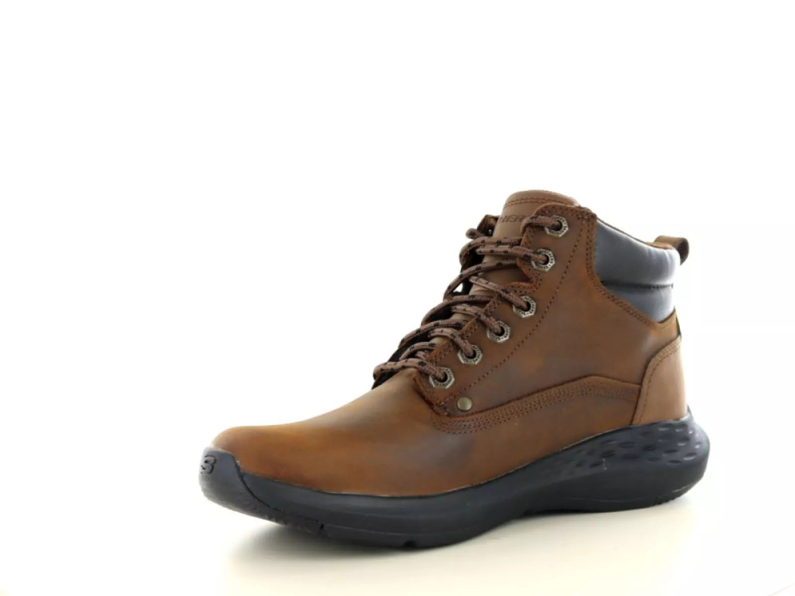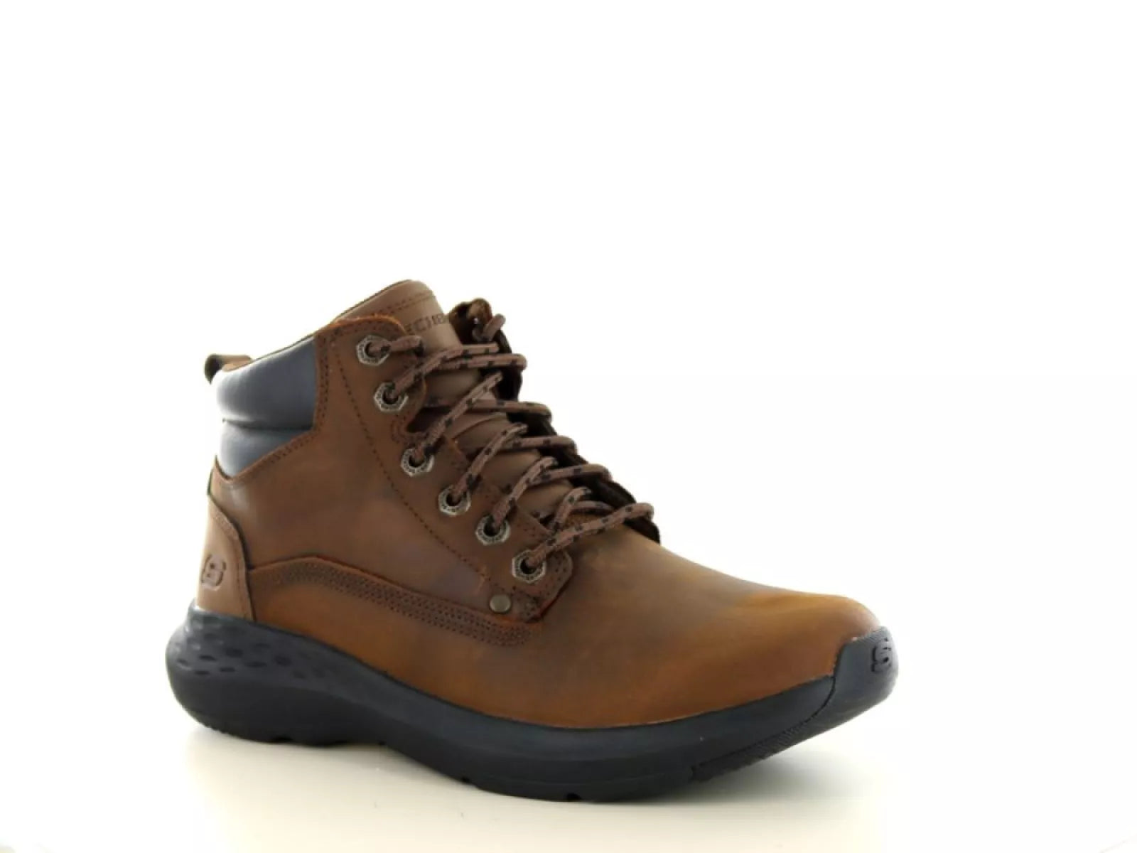 Skechers 205175 Ederic Hoge Veterschoen voor Heren – Bruine Leren Veterschoenen met Dempend Voetbed | Gratis Verzending bij Hafkamp Modeschoenen