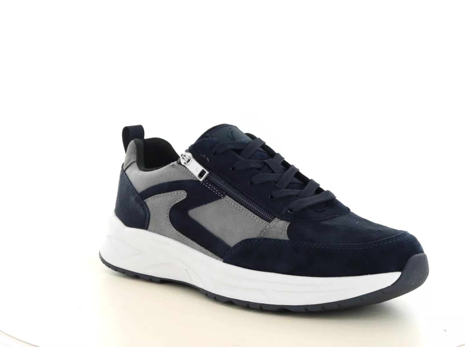 Waldlaufer 738002 – Blauwe leren herenschoen met brede pasvorm