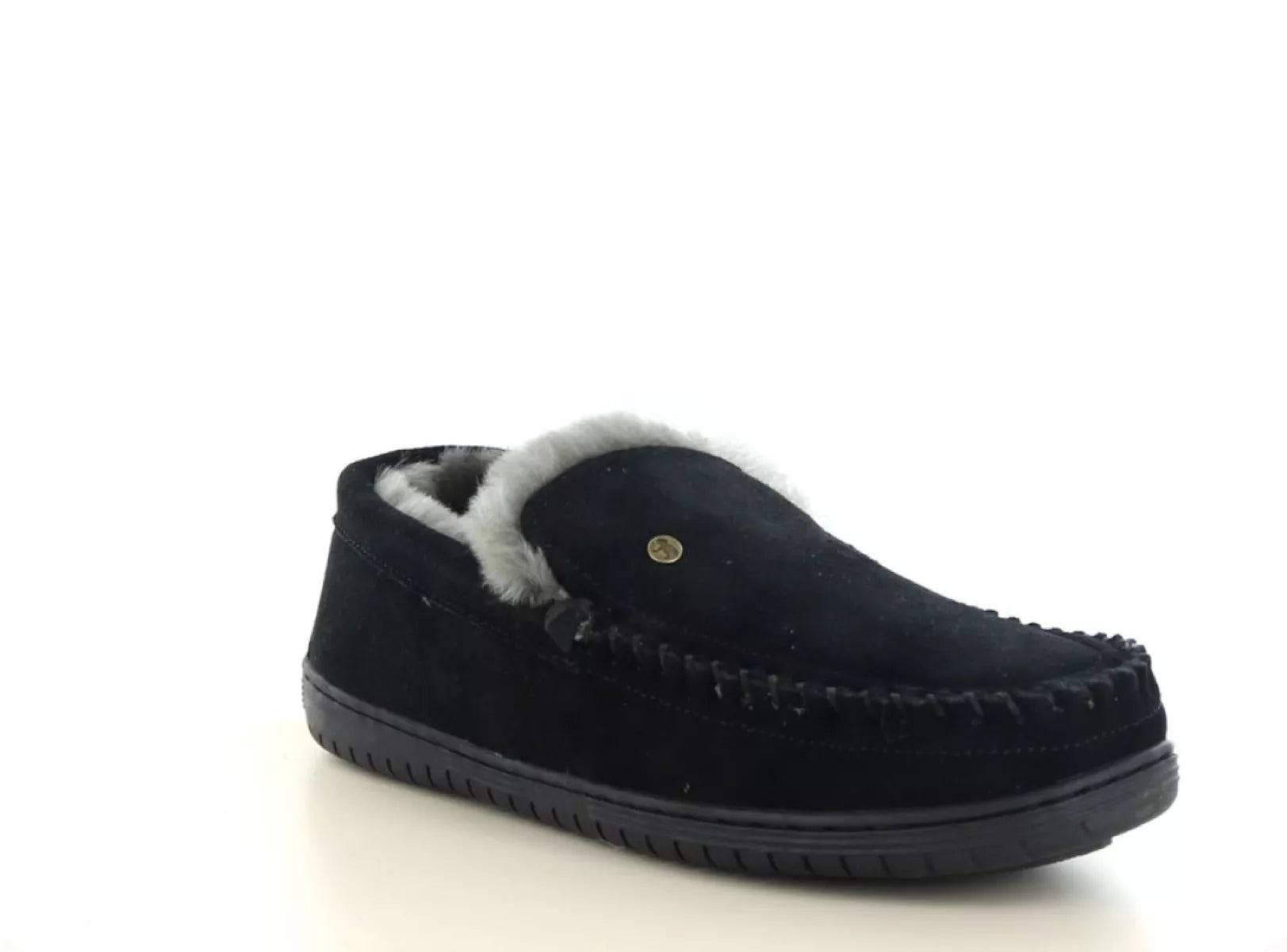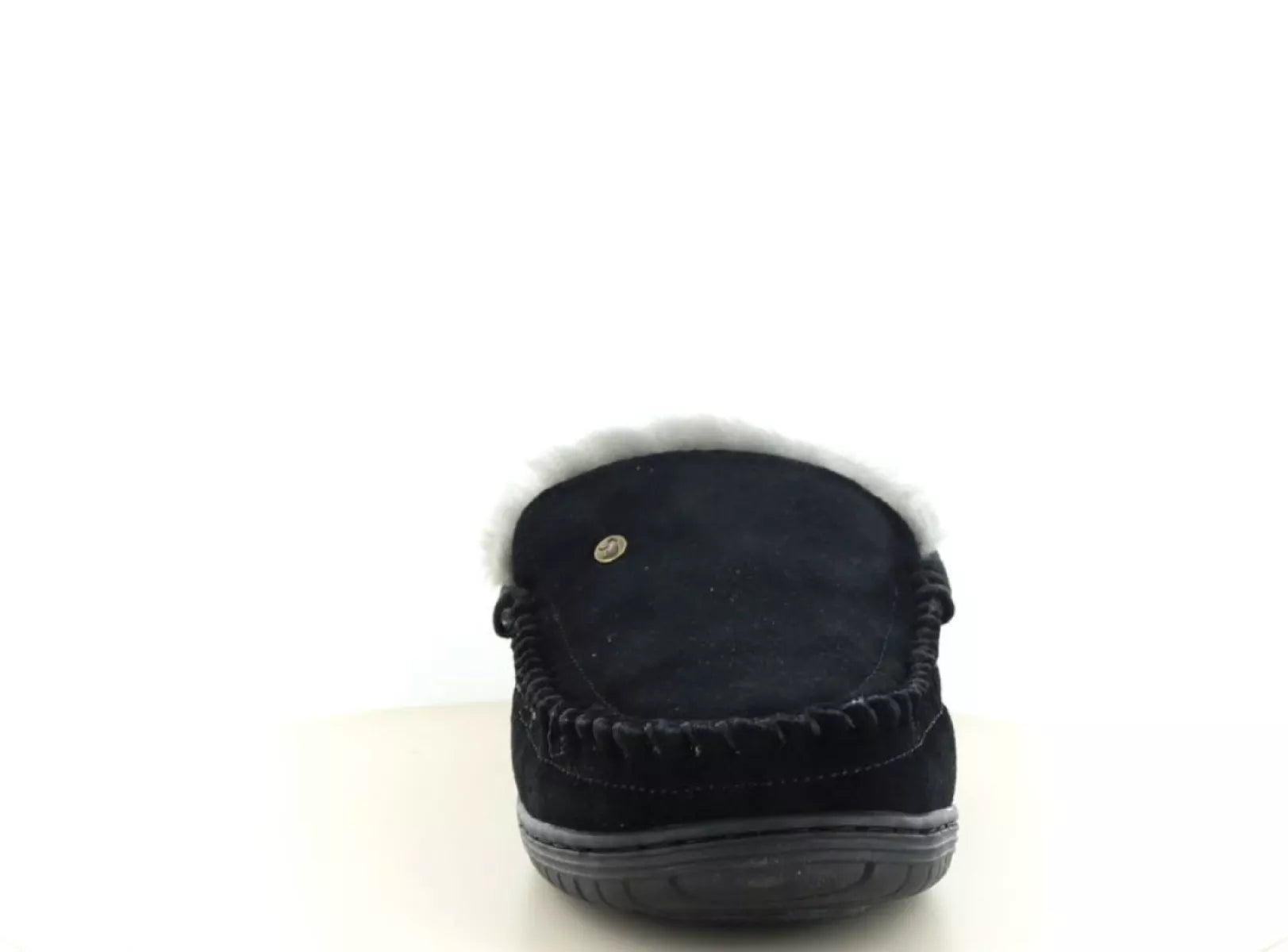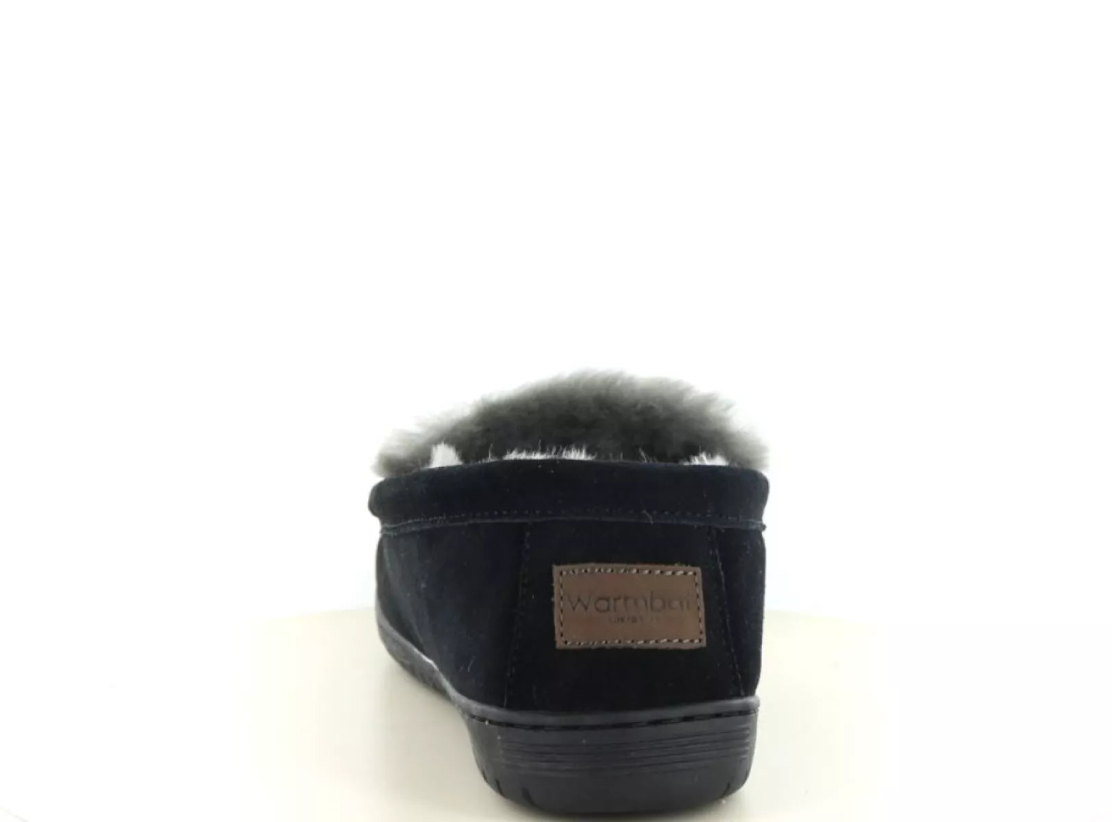 Warmbat Grizzly Men – Suède herenpantoffel met dichte hiel en warme wolvoering in zwart
