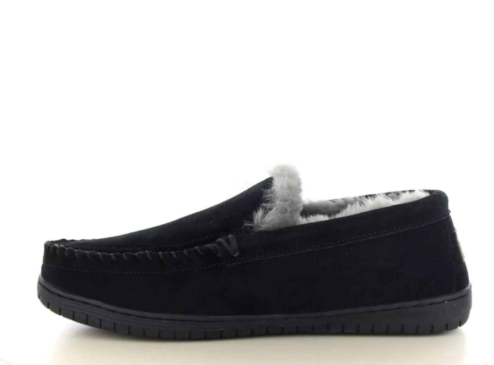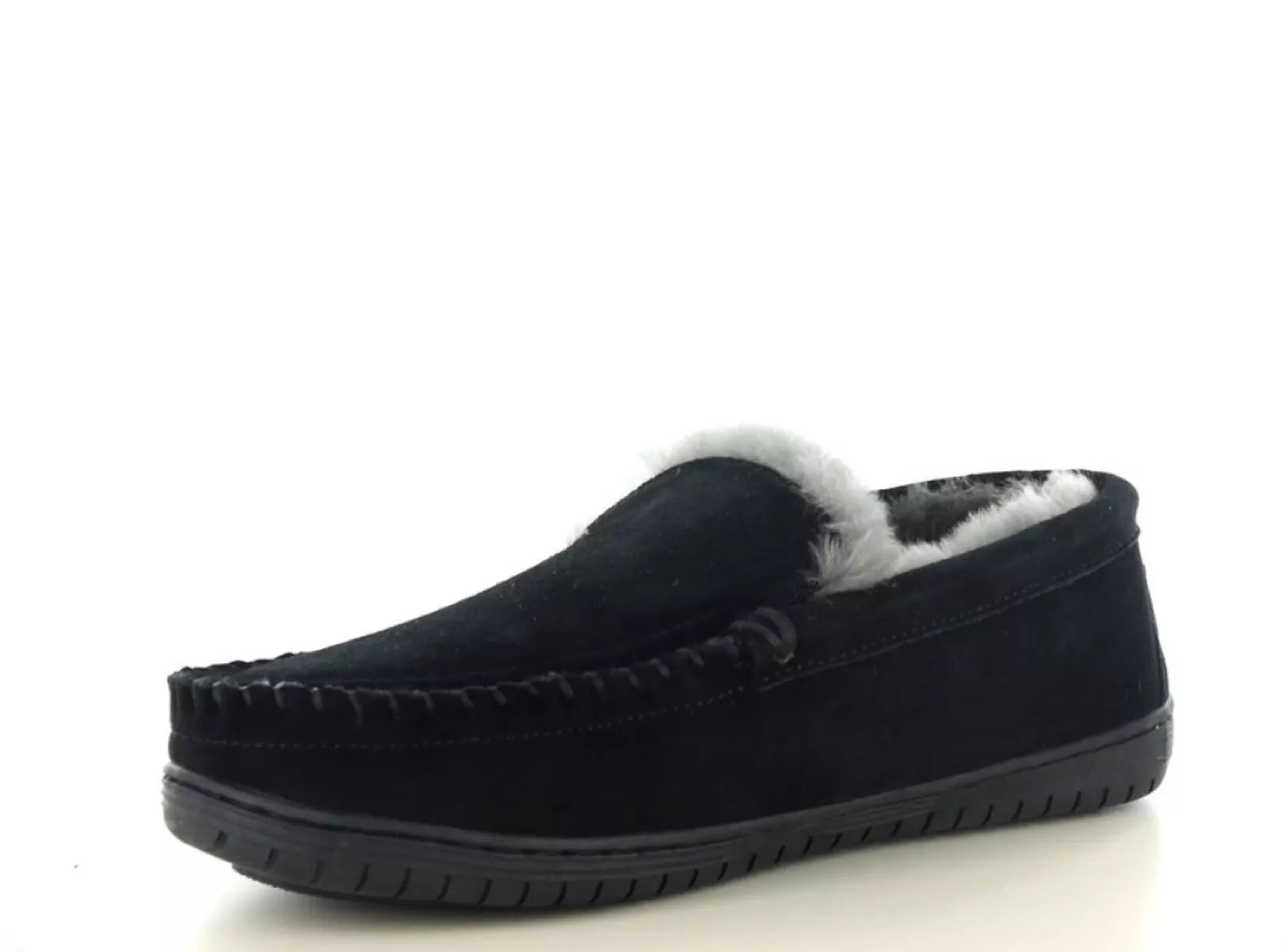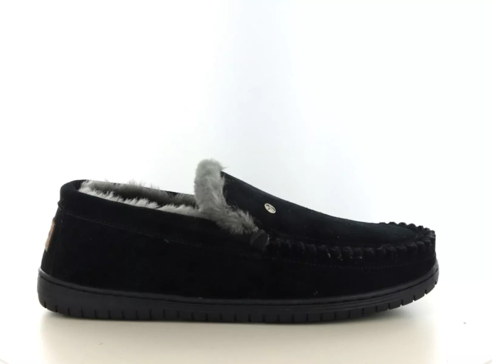 Warmbat Grizzly Men – Suède herenpantoffel met dichte hiel en warme wolvoering in zwart