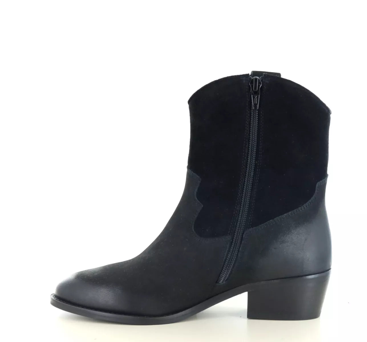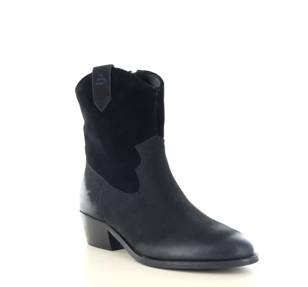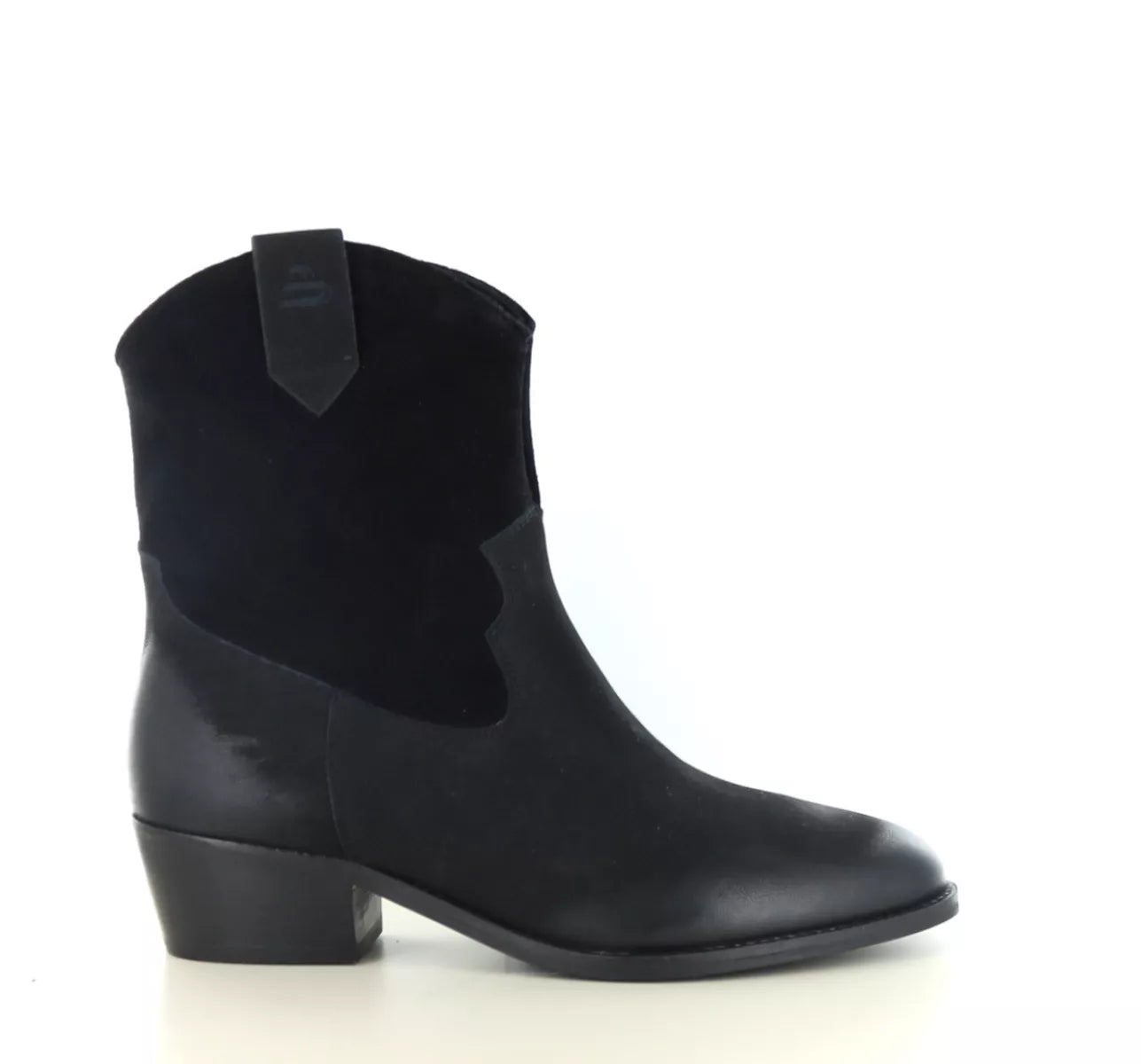 - Enkellaars voor dames, uitgevoerd in een combinatie van leer en suède