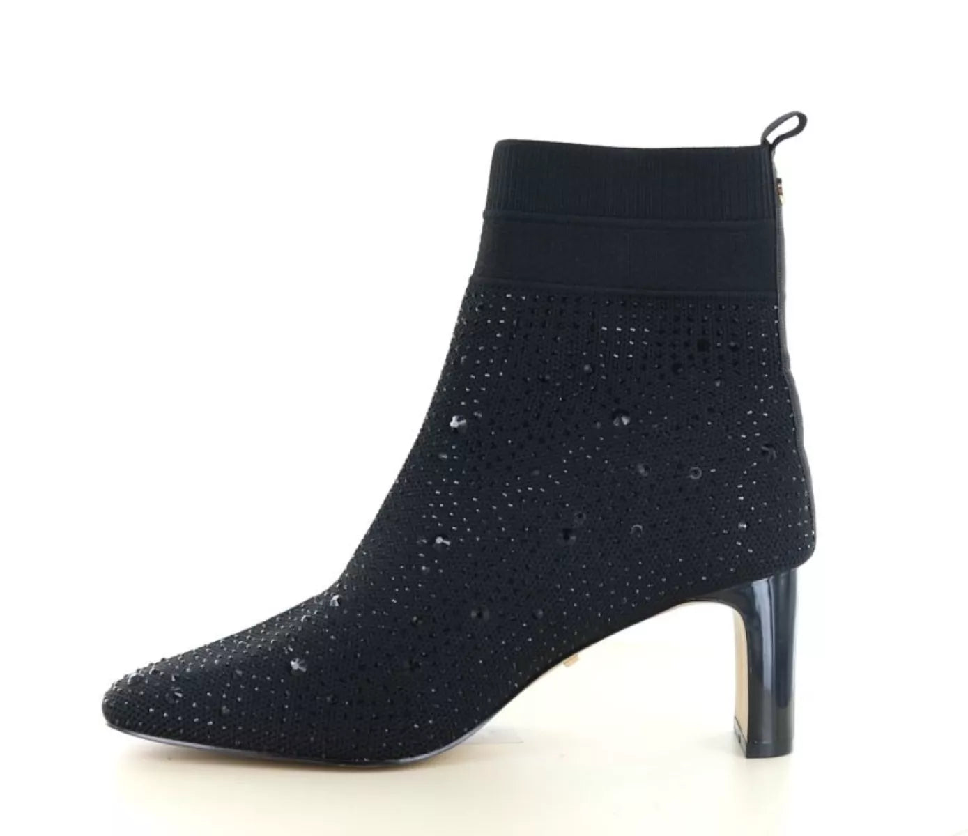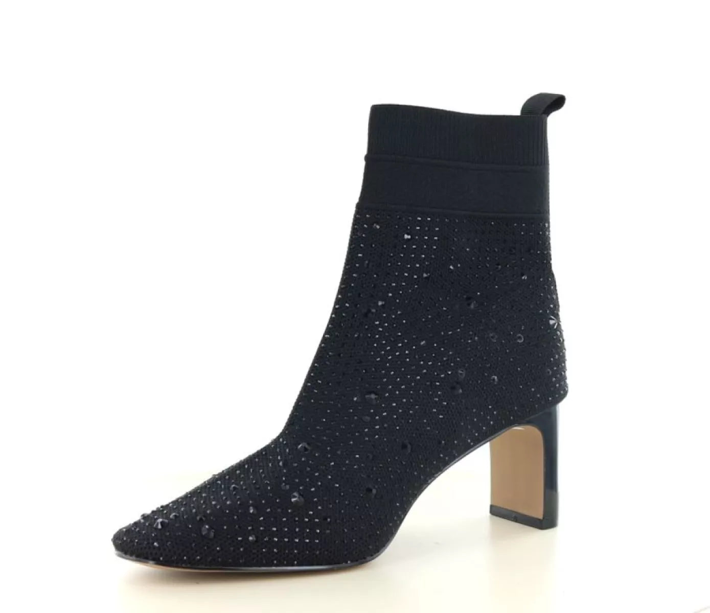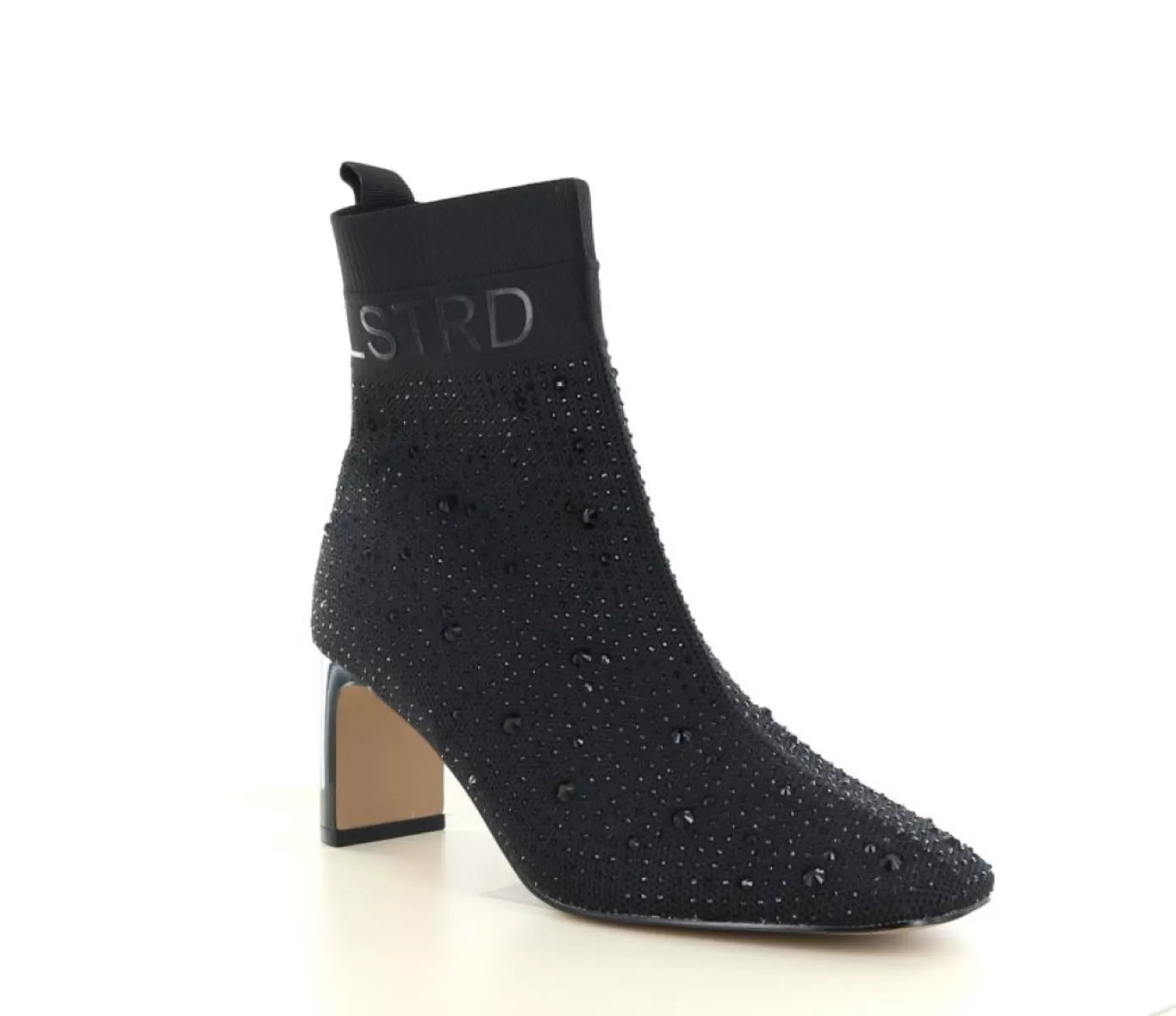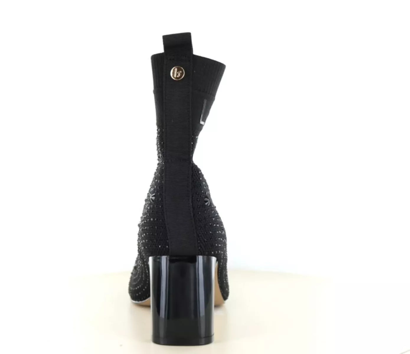 De La Strada 2151725 Black is een verfijnde enkellaars die glamour en comfort perfect combineert. Uitgevoerd in elastisch stretchmateriaal, sluit deze laars soepel om de enkel voor een elegante, aansluitende pasvorm. De tijdloze zwarte kleur wordt extra bijzonder door de fonkelende strass-steentjes die het hele oppervlak sieren en bij elke beweging subtiel schitteren.