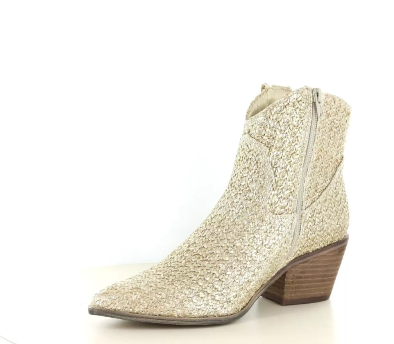- Trendy western enkellaars in luxe gold raffia met subtiele glans