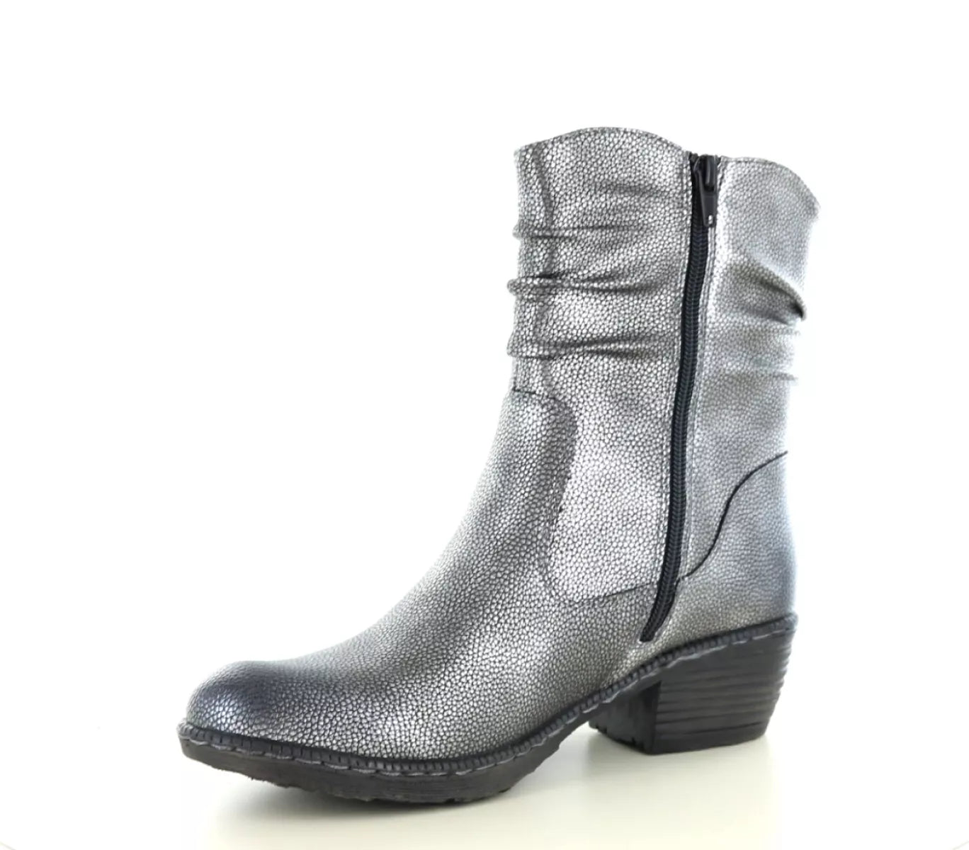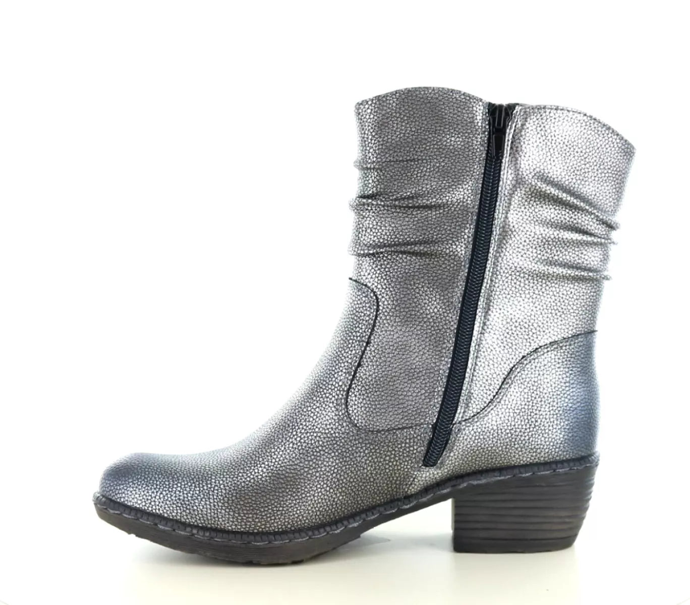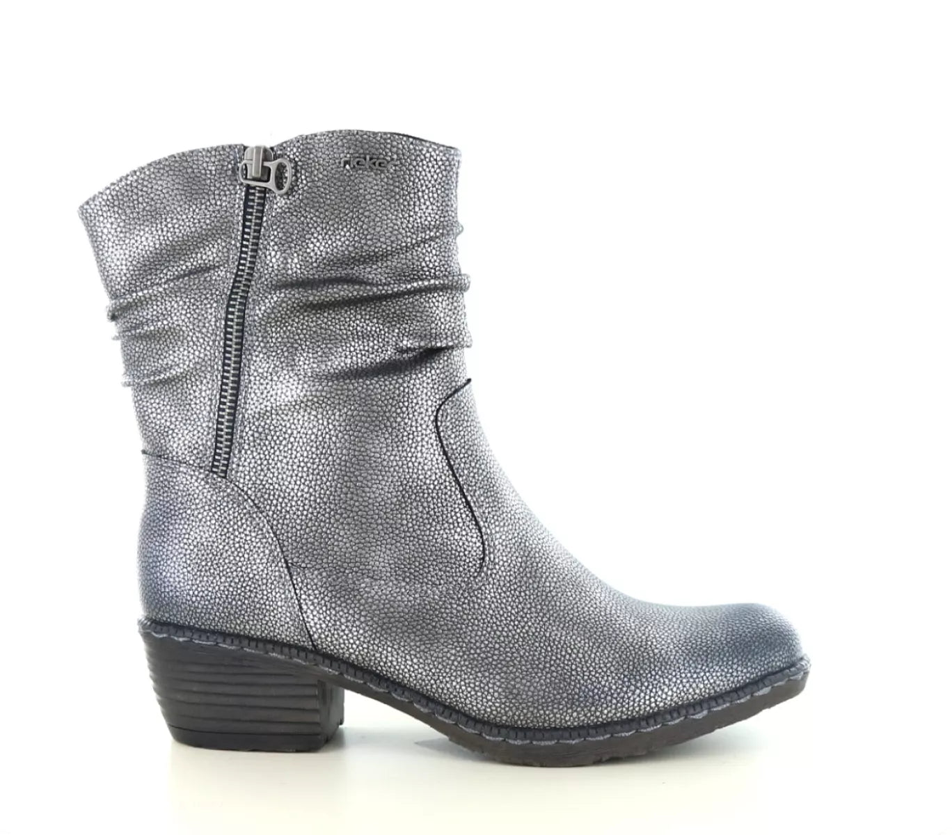 Rieker 93760 – Comfortabele zilverkleurige dames enkellaars