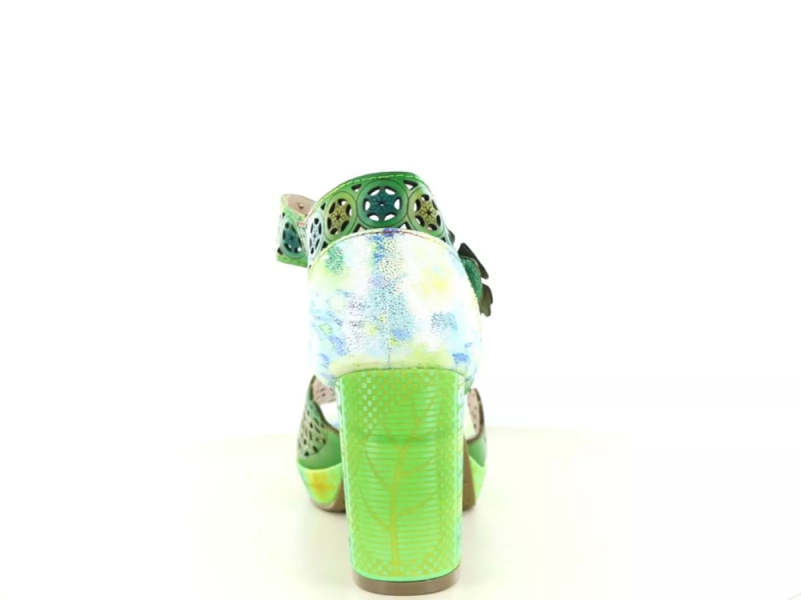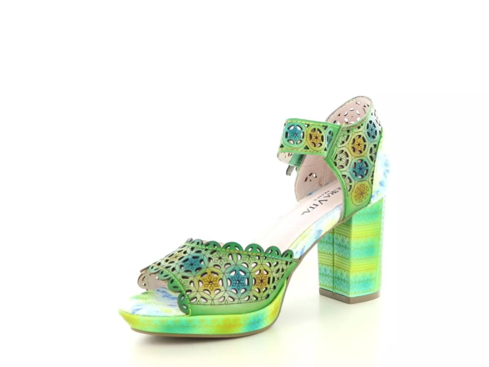 De klittenbandsluiting zorgt voor een gemakkelijke en verstelbare pasvorm, terwijl de zorgvuldig ontworpen hak de benen flatteert zonder in te leveren op comfort. Het unieke ontwerp, geïnspireerd door natuurlijke en etnische invloeden, maakt deze sandaal tot een echte blikvanger. Laura Vita staat bekend om het gebruik van levendige kleuren en gedurfde prints, wat duidelijk terugkomt in dit model.