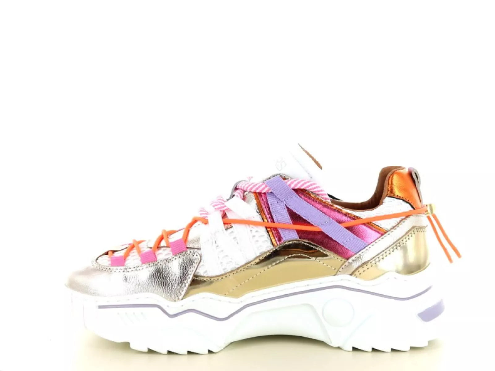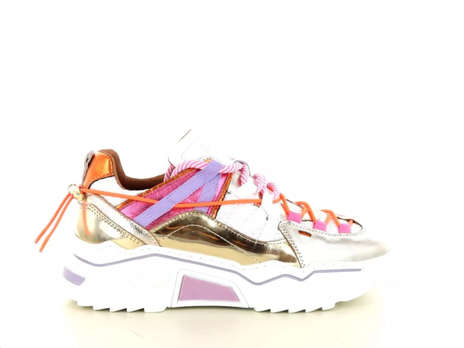 - Stijlvol ontwerp: Trendy damessneaker met een opvallende champagne/pink kleurcombinatie.