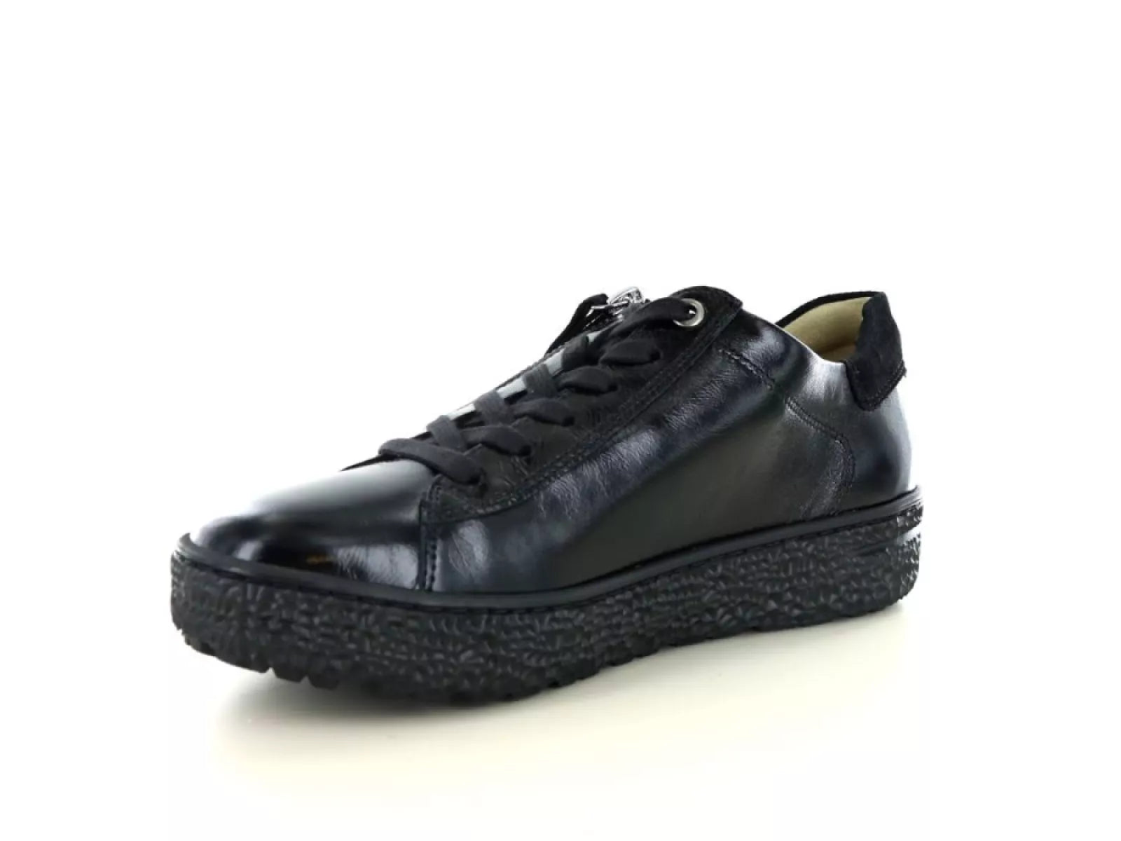 De lage veterschoen is uitgevoerd in de tijdloze kleur zwart (630101) en heeft een breedtemaat van H, wat staat voor een brede pasvorm. De combinatie van een ritssluiting en veters zorgt niet alleen voor een stevige pasvorm, maar geeft ook een modieuze uitstraling aan deze veelzijdige schoen.