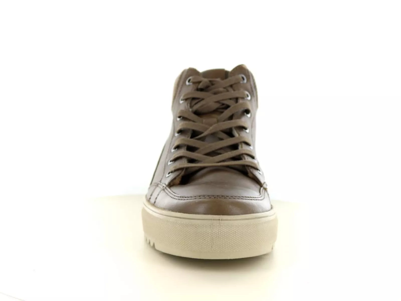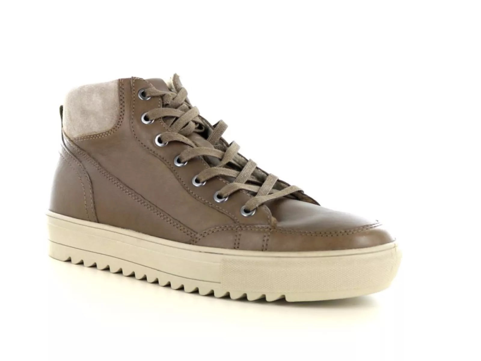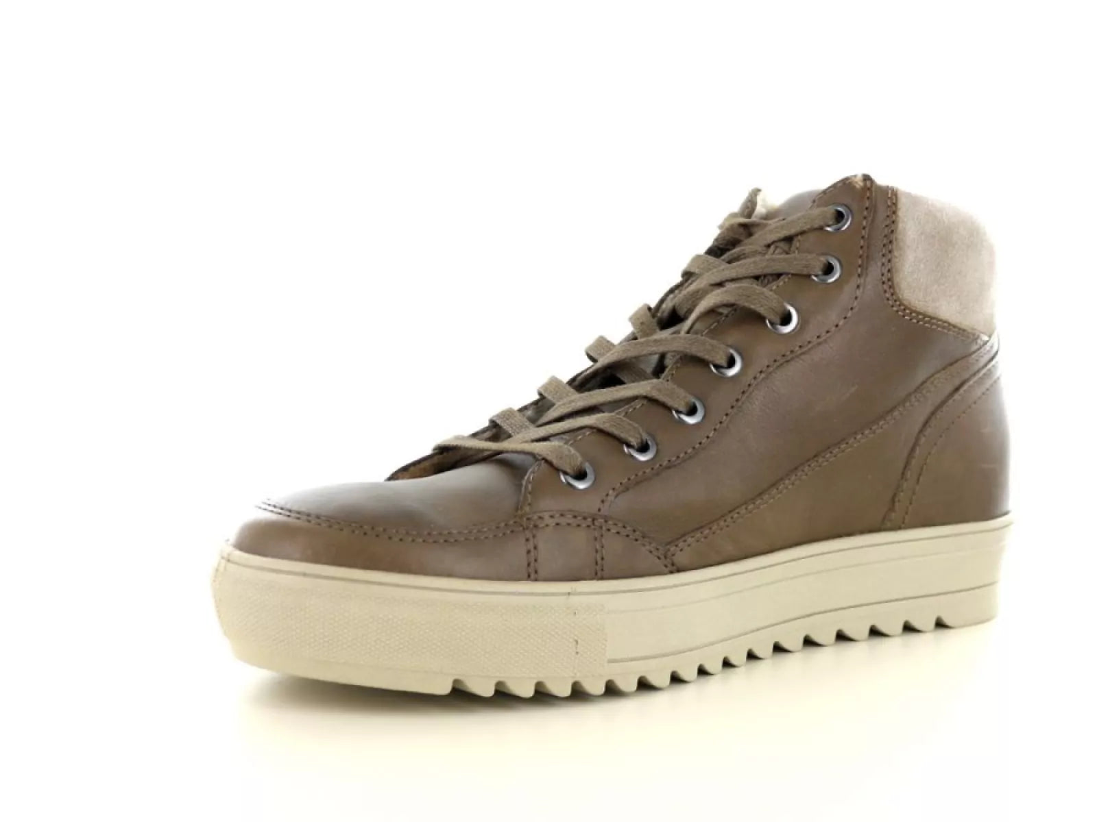 Deze hoge sneaker is uitgevoerd met een traditionele vetersluiting, waardoor je de pasvorm naar wens kunt aanpassen. Het gebruik van echt leer garandeert niet alleen duurzaamheid, maar ook een luxe uitstraling die perfect past bij zowel casual als meer formele outfits.