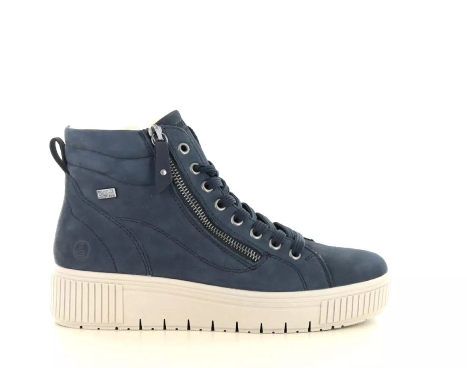 Ontdek de perfecte combinatie van stijl en comfort met de Remonte D3B71 halfhoge damesschoen in de kleur pazifik blauw. Deze trendy nubuck veterschoen is ontworpen voor vrouwen die er modieus uit willen zien zonder concessies te doen aan comfort. Dankzij de combinatie van rits- en vetersluiting trek je de schoen eenvoudig aan en pas je hem perfect aan jouw voet aan.