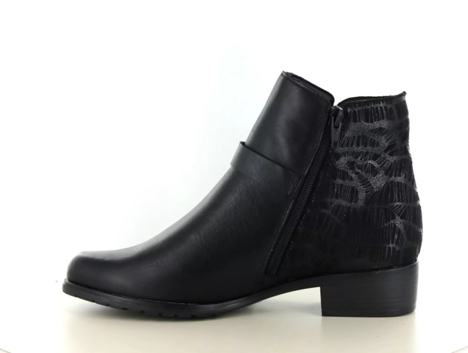 - Elegante zwarte enkellaars voor dames met subtiel crocoprint accent