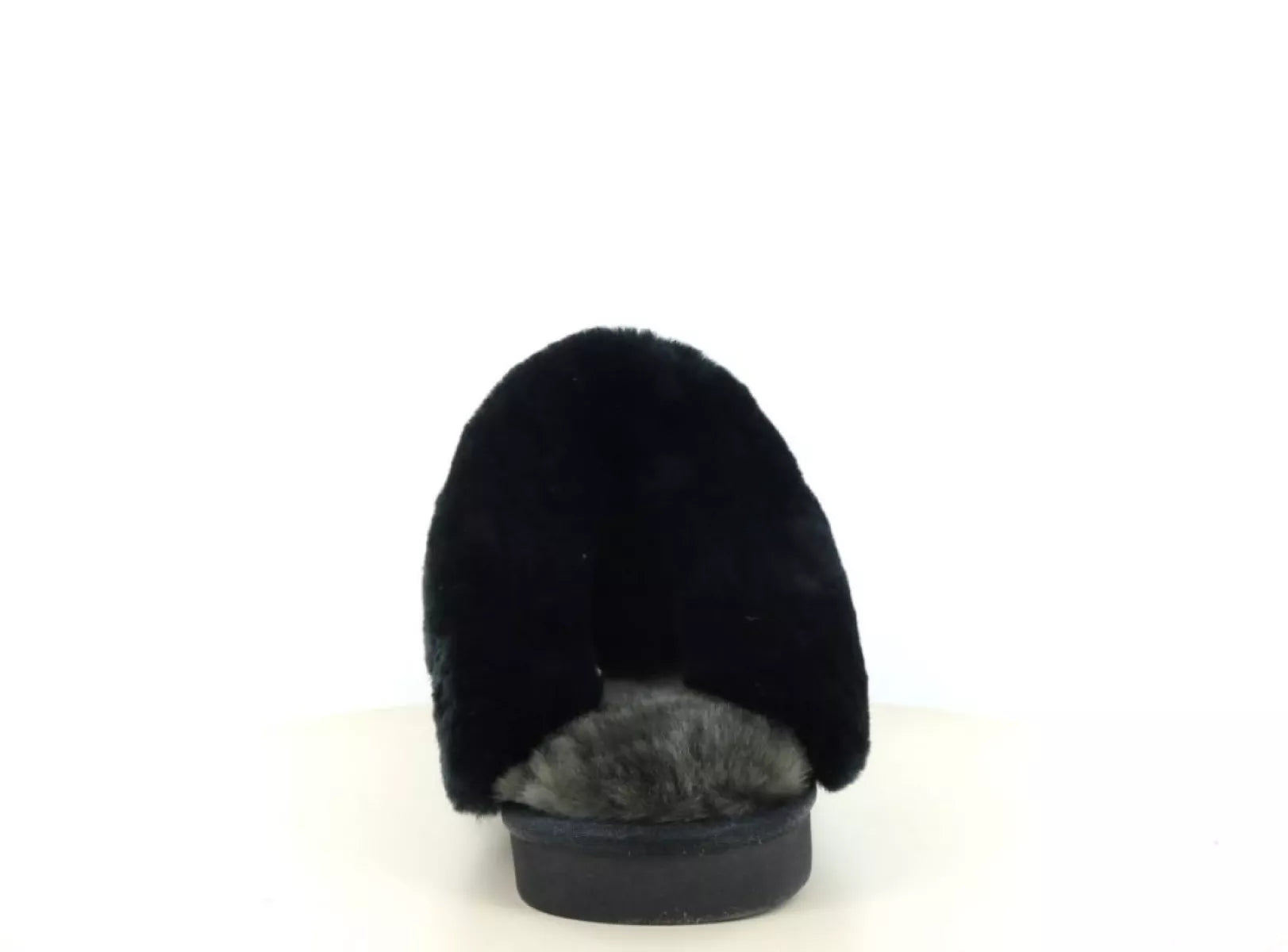 Warmbat Flurry Woman – Zwarte suède pantoffel met schaapswollen voering