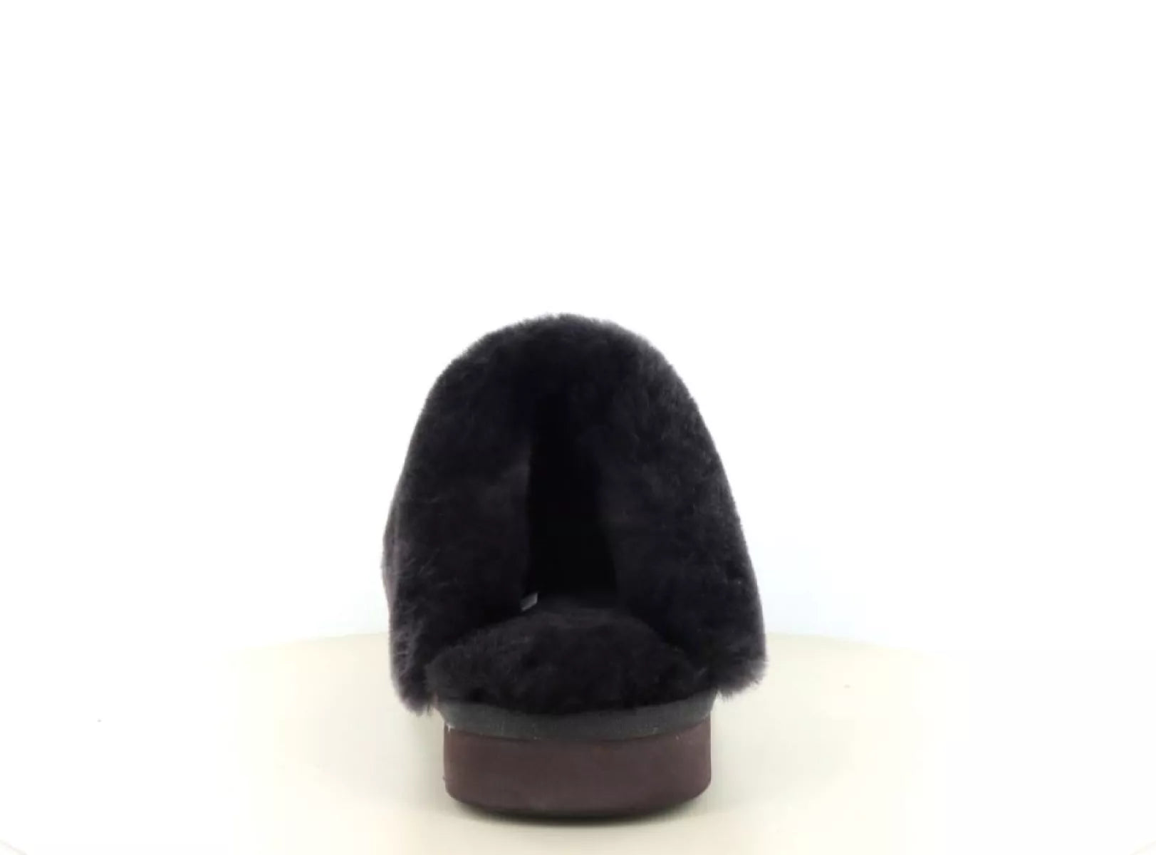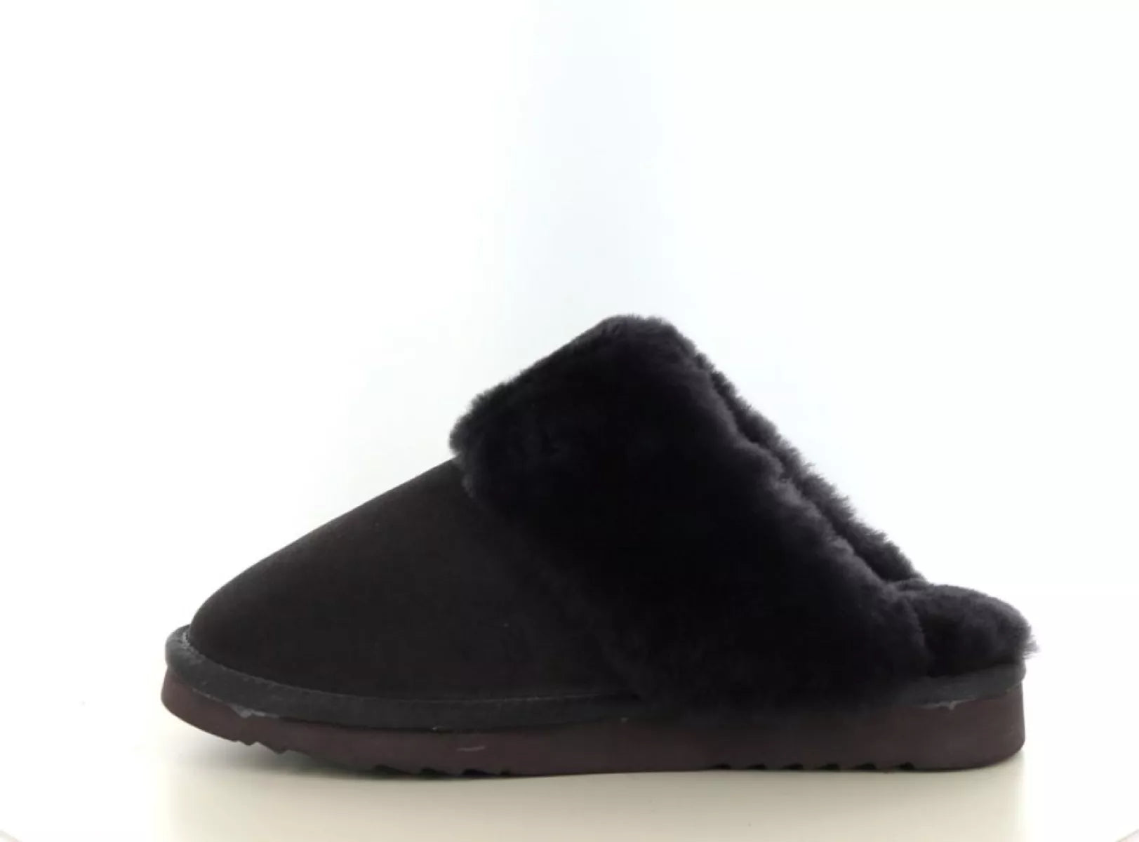 Warmbat Flurry Woman – Suède pantoffel met wolkraag in choco
