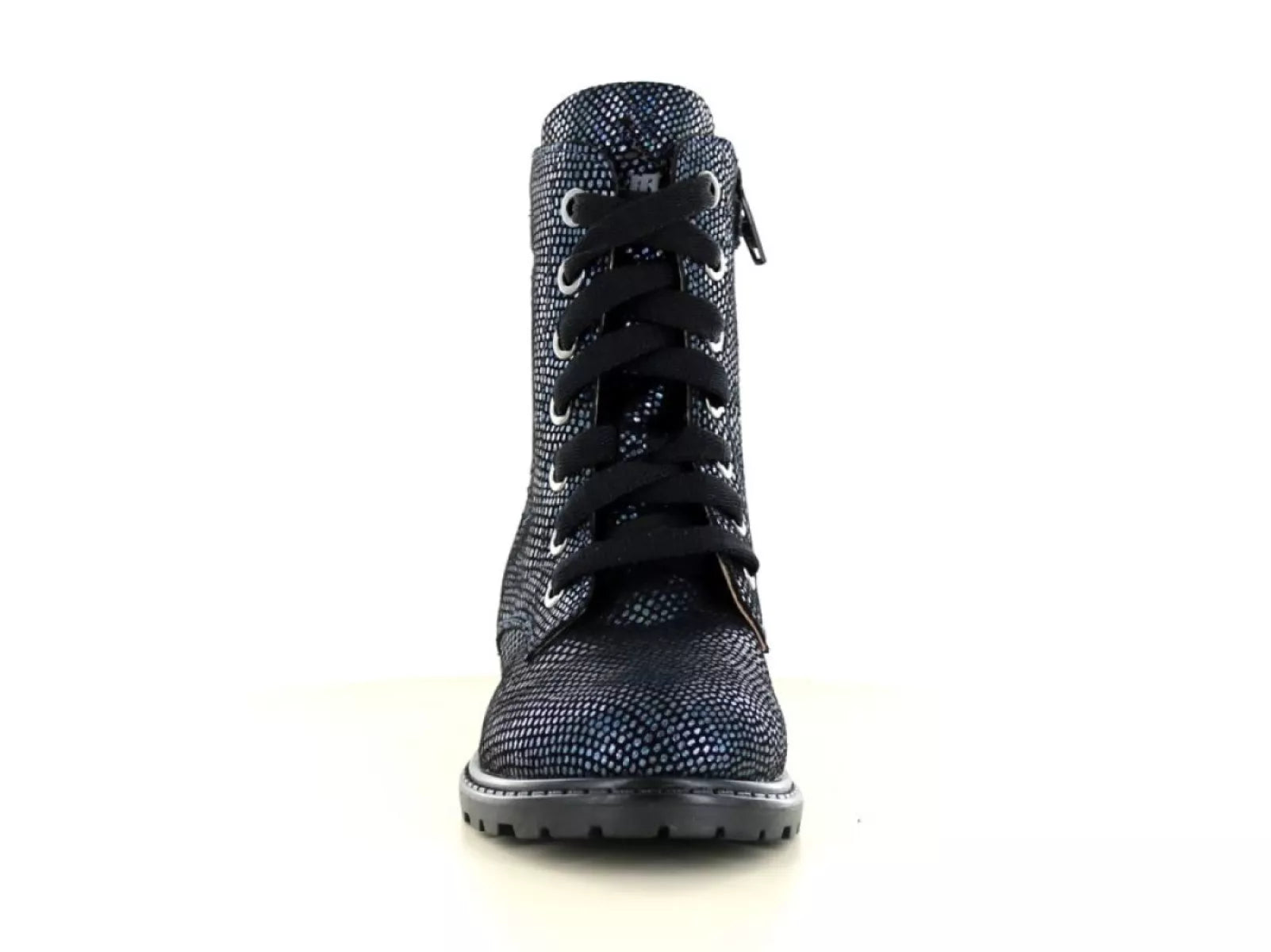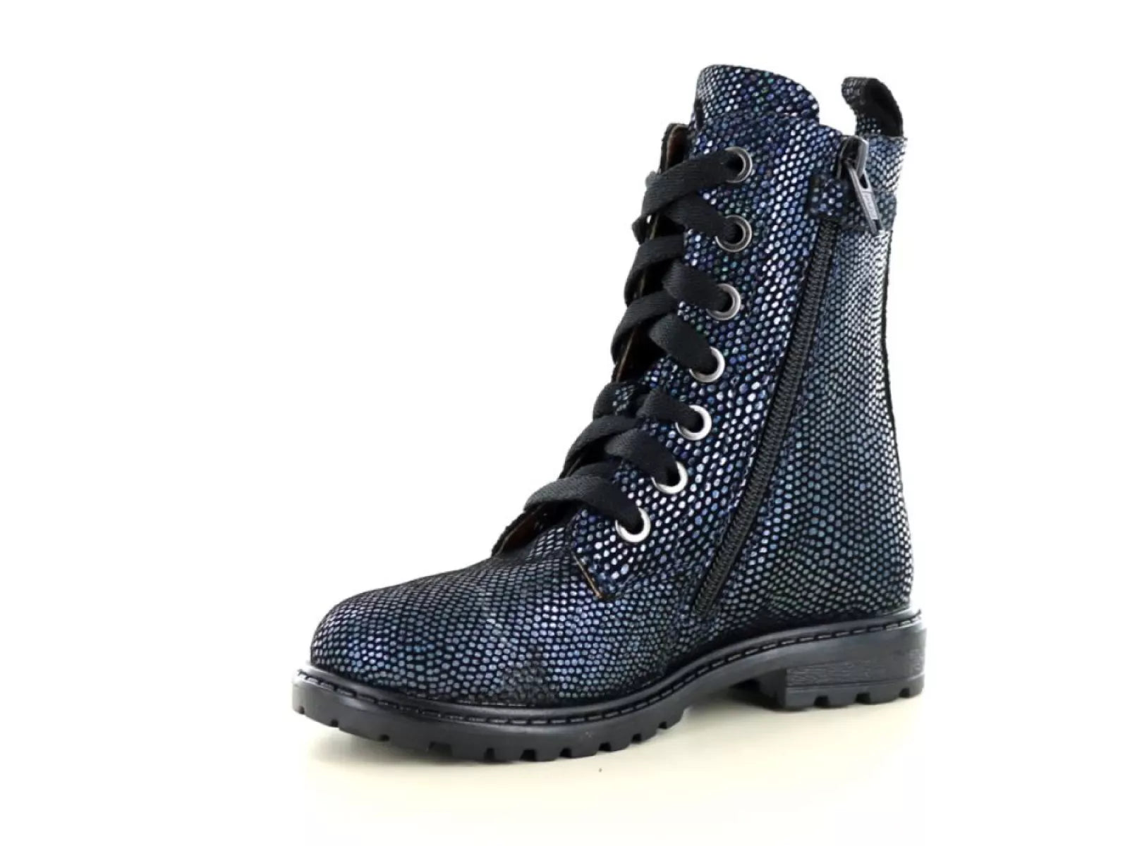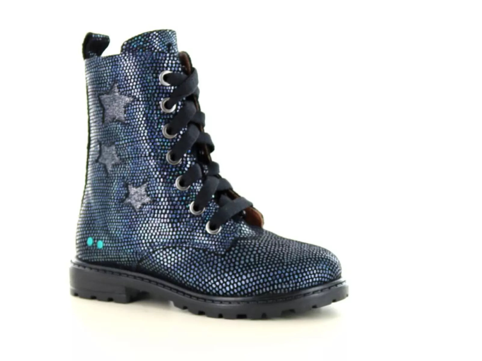 De veterlaars is uitgevoerd in een multicolor design, wat hem trendy en speels maakt. De sluiting met zowel een veter als een rits zorgt ervoor dat de laars eenvoudig aan en uit te trekken is. Daarnaast beschikt de schoen over een uitneembaar voetbed, wat bijdraagt aan een goede pasvorm en extra ruimte biedt voor groei(