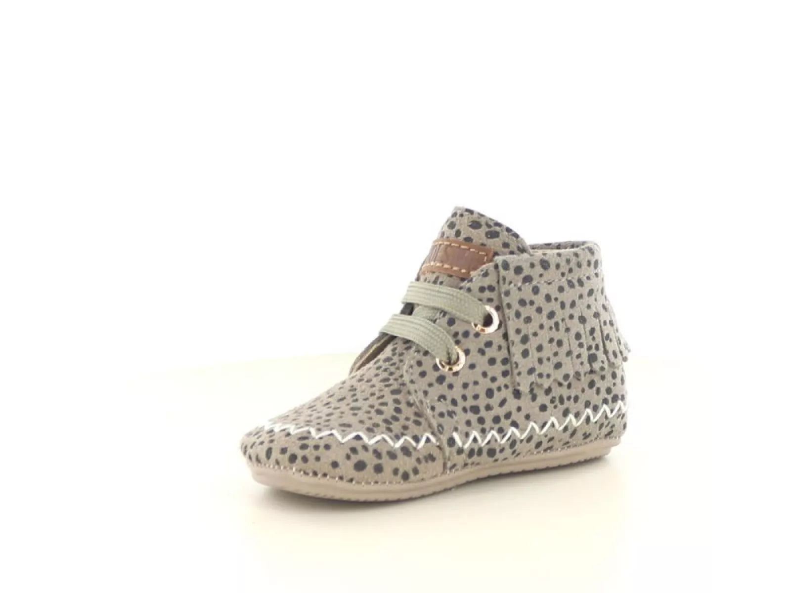 De Shoesme BP24W008 is een ideale eerste stapschoen voor meisjes die hun eerste avontuurlijke stapjes zetten. Gemaakt van hoogwaardig suède, biedt deze schoen zowel duurzaamheid als comfort voor de gevoelige voetjes van je kind. De flexibele zool is speciaal ontworpen om de natuurlijke beweging van de voet te bevorderen, wat cruciaal is tijdens het leren lopen. Bovendien zorgt de verstevigde hiel voor de nodige ondersteuning en stabiliteit, waardoor je kleintje met vertrouwen de wereld kan verkennen. De vetersluiting zorgt voor een nauwkeurige en veilige pasvorm, terwijl het stijlvolle 'C grey dots' design een trendy uitstraling geeft die gemakkelijk te combineren is met diverse outfits.