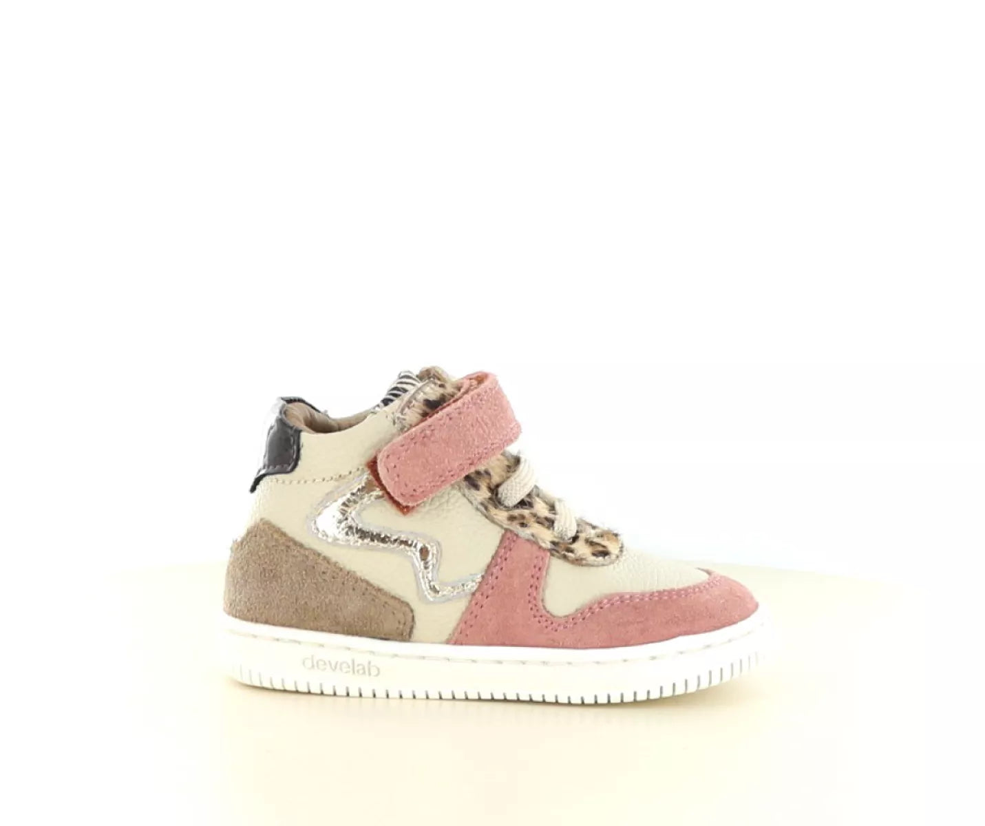 De kleur old pink fantasy met speelse details, zoals metallic en dierenprintaccenten, maakt deze sneaker een echte blikvanger. Perfect om te combineren met zowel casual als stoere outfits. Zoals je van Develab mag verwachten, staat de schoen garant voor kwaliteit, comfort en een kindvriendelijk design.