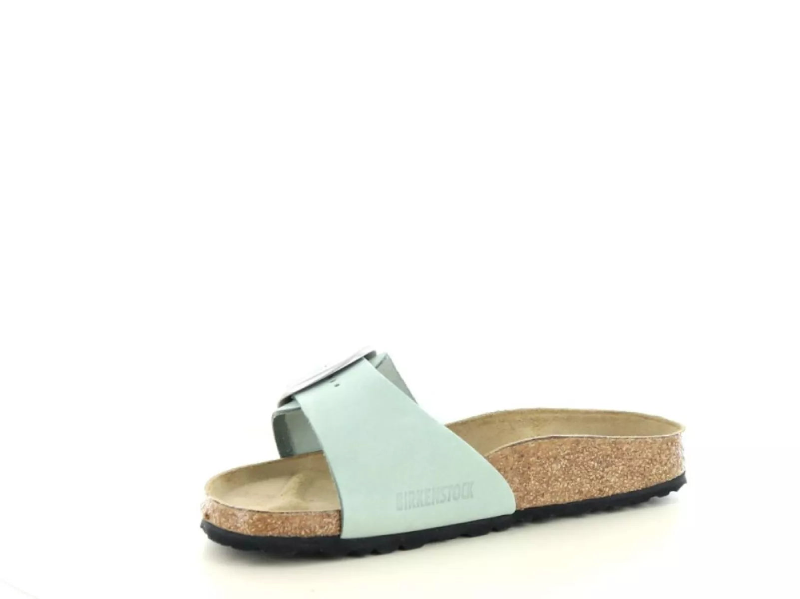 De Birkenstock Madrid Big Buckle in Pure Sage is een stijlvolle herinterpretatie van het klassieke Madrid-model. Deze slipper combineert minimalistisch design met een opvallende extra grote gesp en een prachtige lichtgroene nubuck leren afwerking – perfect voor de moderne vrouw die houdt van comfort én flair.