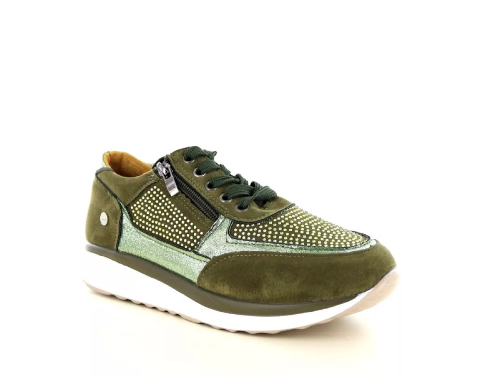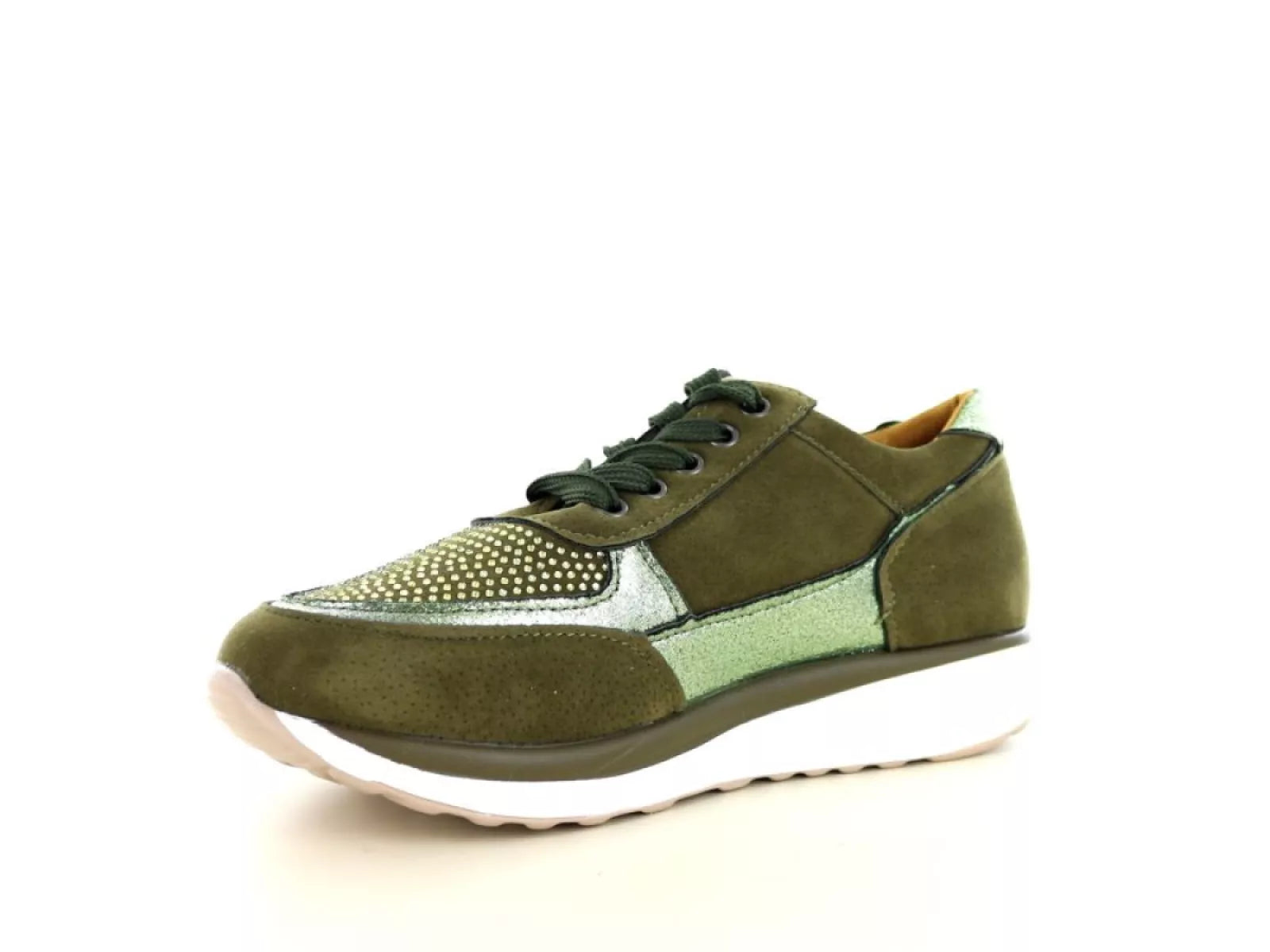 De Modena van het merk Hafjes is een mooie sneaker gemaakt van synthetisch materiaal, voor dames. Deze schoen is uitgevoerd in de kleur green. De sluiting is door middel van een rits en veters. De Modena is een heerlijk lichtgewicht sneaker, met een fijne dempende zool.