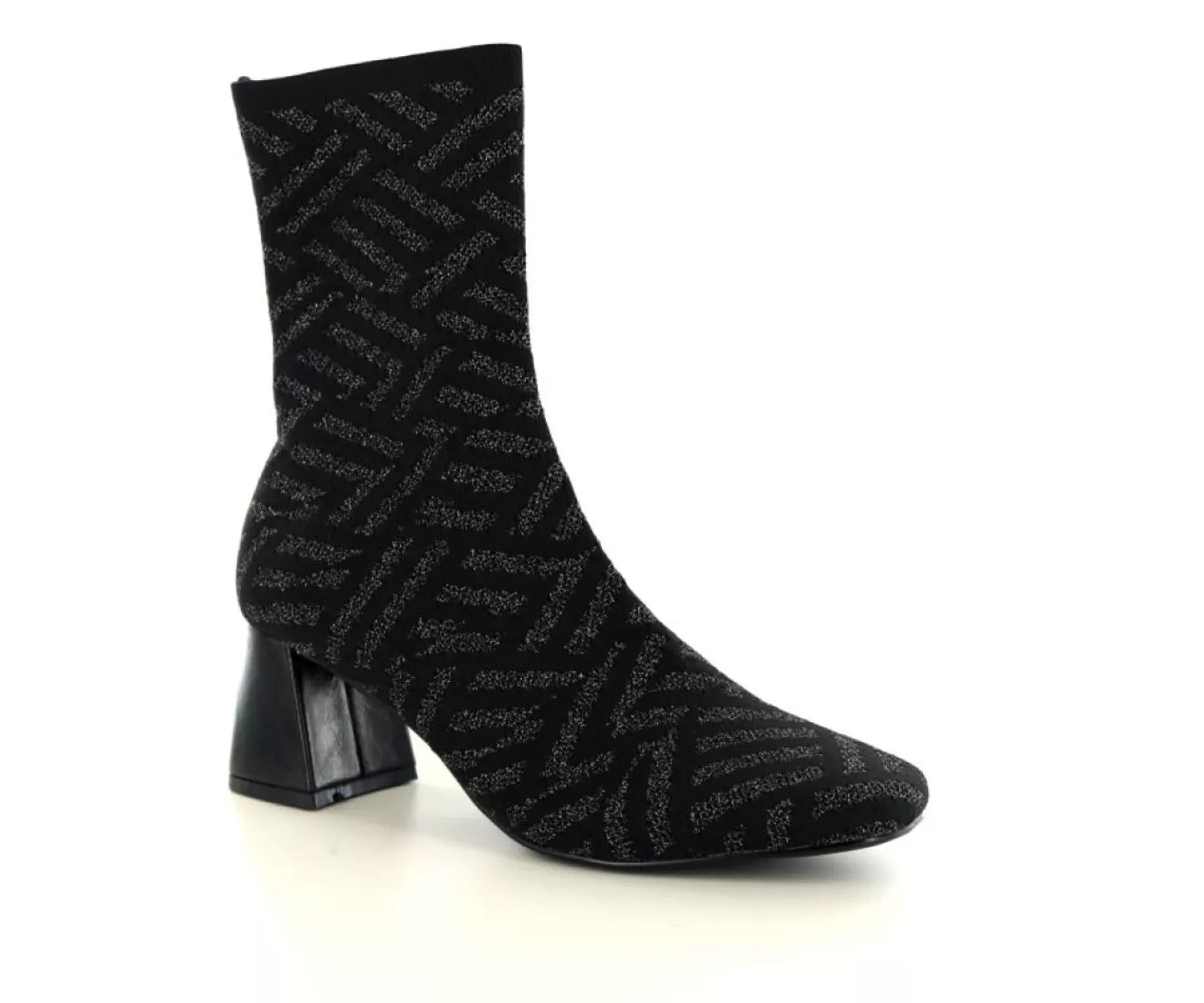 De 2203631 van la Strada is een mooie enkellaars gemaakt van stretch materiaal, voor dames. Deze stretch enkellaars is uitgevoerd in de kleur 4500 black/silver knitted. De sluiting is door middel van een instap.