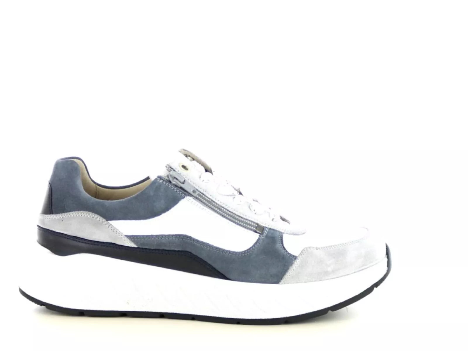 De combinatie van veter- en ritssluiting zorgt voor een gemakkelijke en aanpasbare pasvorm, waardoor de schoen zich perfect aanpast aan de voet. De schokabsorberende en slipvaste zool bevordert een natuurlijke afwikkeling van de voet, wat vermoeidheid vermindert en bijdraagt aan een aangename loopervaring.