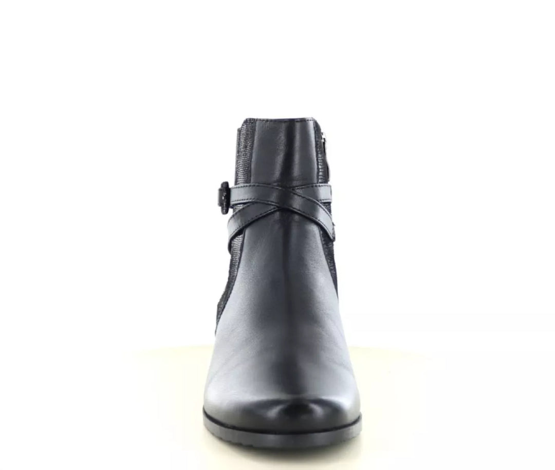 Ontdek de perfecte mix van comfort en stijl met de 2311-25 enkellaars in black combi. Deze elegante damesschoen is uitgevoerd in soepel leer met verfijnde details, waaronder een glanzend accent en een decoratief riempje. De wijdtemaat H zorgt voor een comfortabele pasvorm, zelfs voor bredere voeten, zonder in te leveren op stijl.