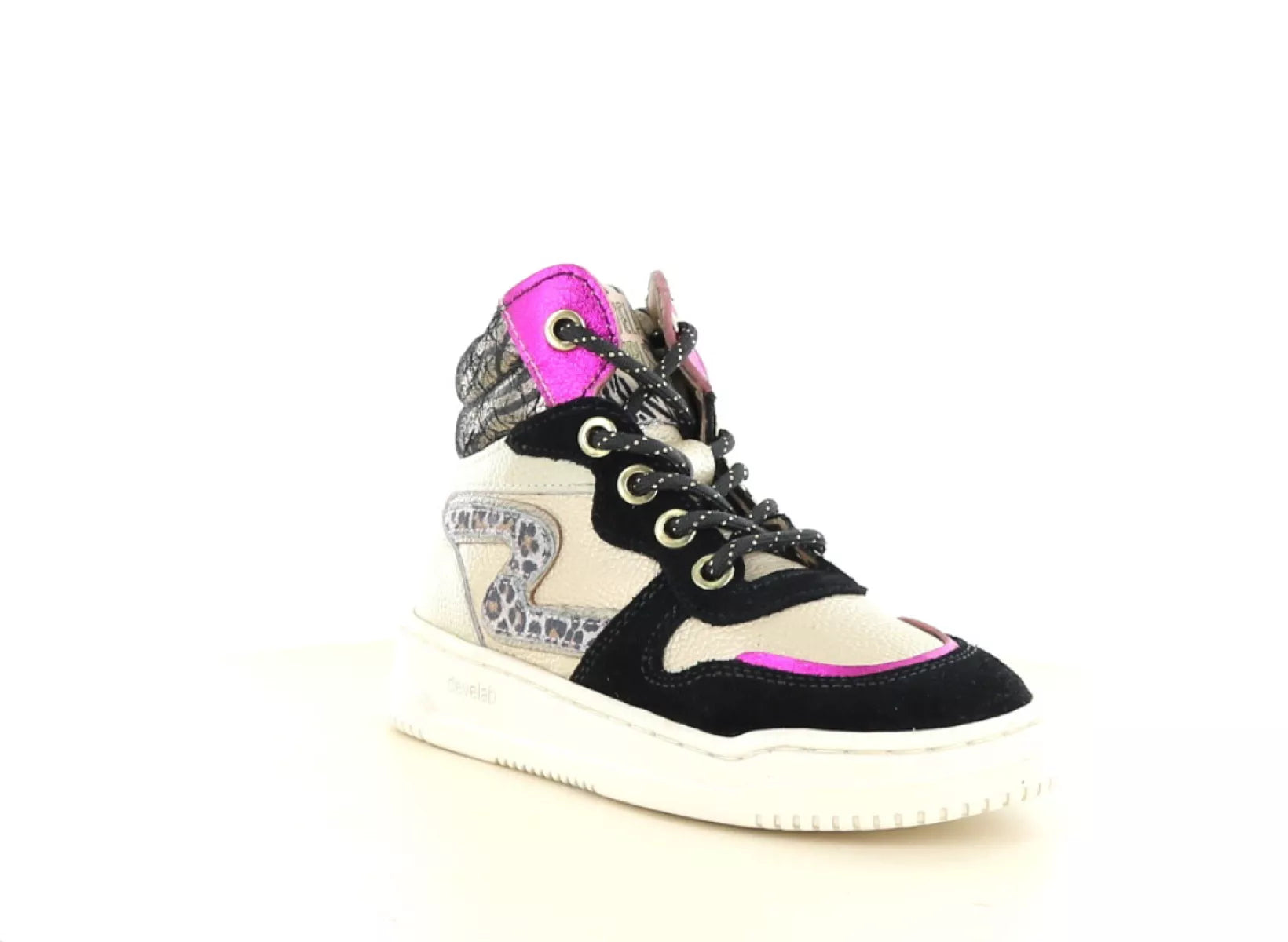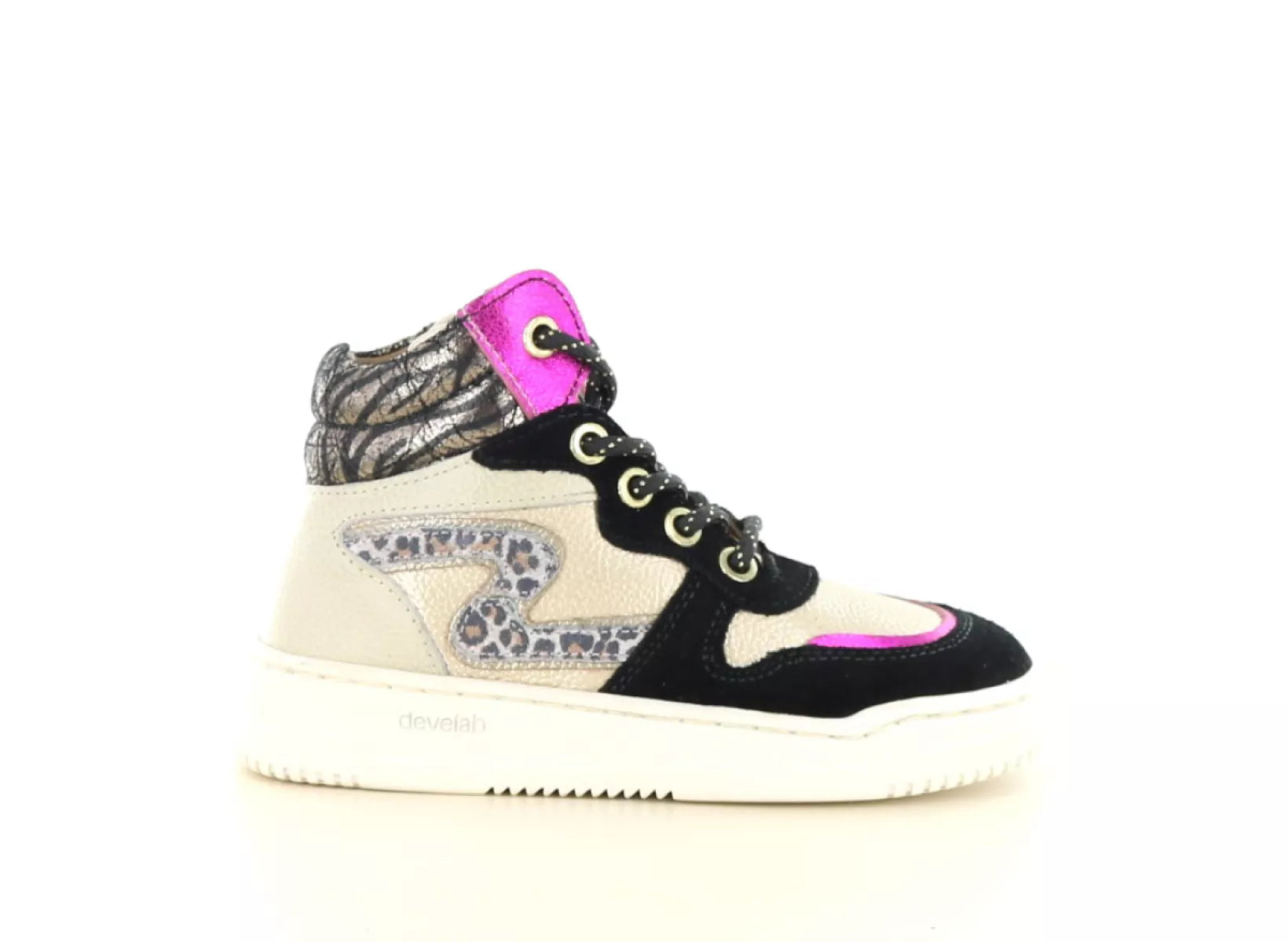 De Develab 41926 is een opvallende en stoere meisjessneaker die comfort en stijl perfect combineert. Deze halfhoge sneaker is uitgevoerd in een luxe mix van leer en suède, wat zorgt voor een duurzame kwaliteit en een hippe uitstraling.