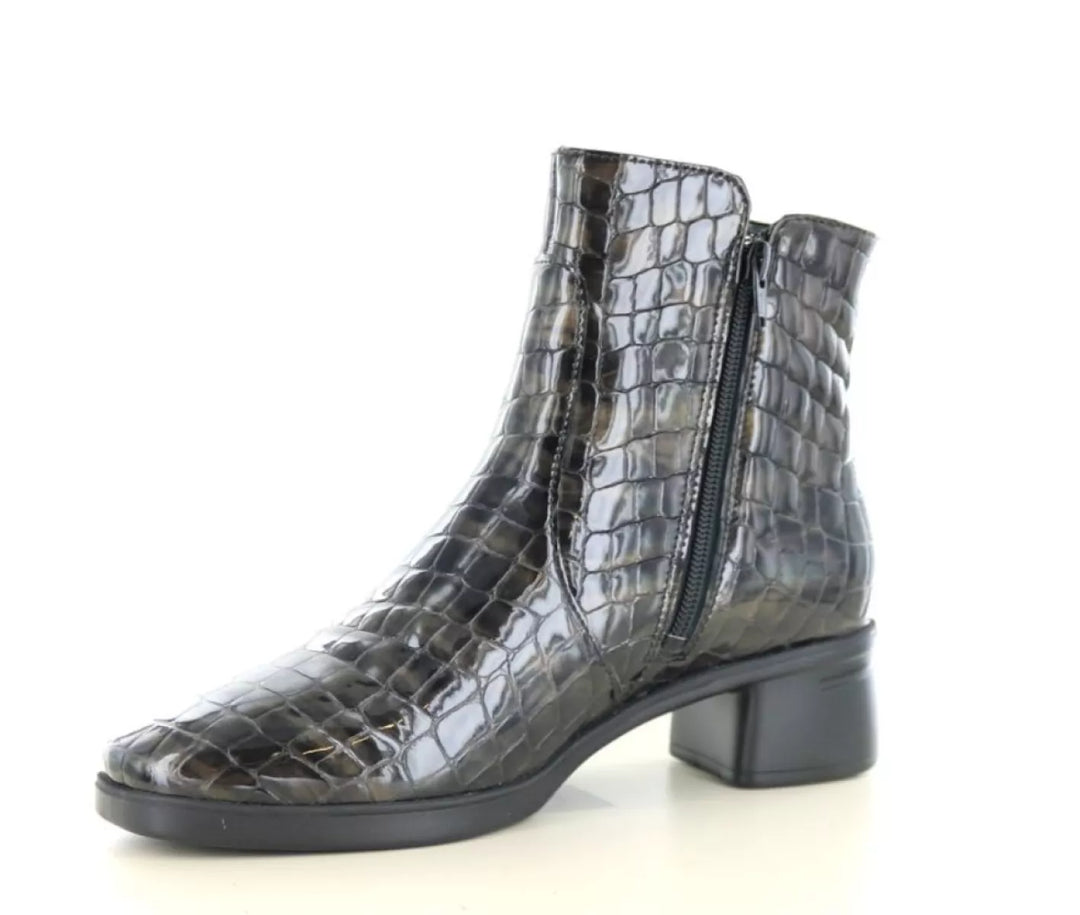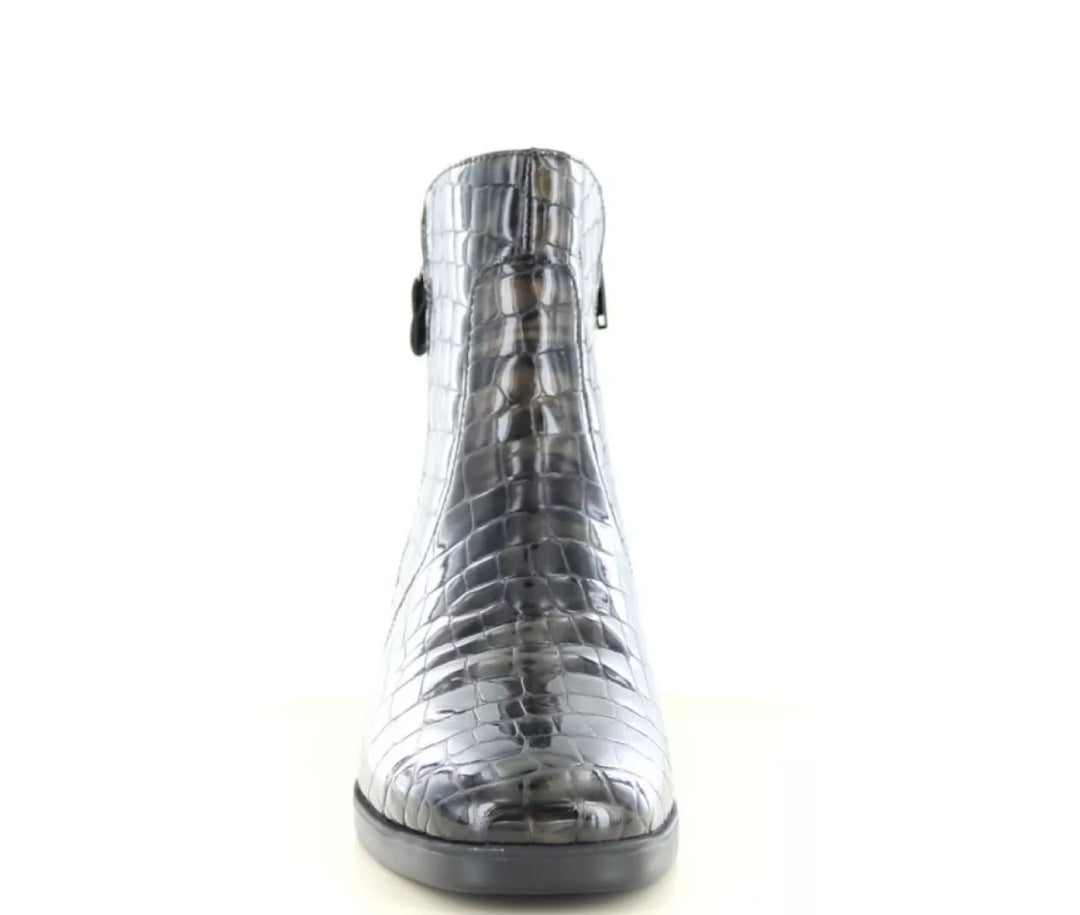 • Stijlvolle dames enkellaars in lakleer met croco-structuur